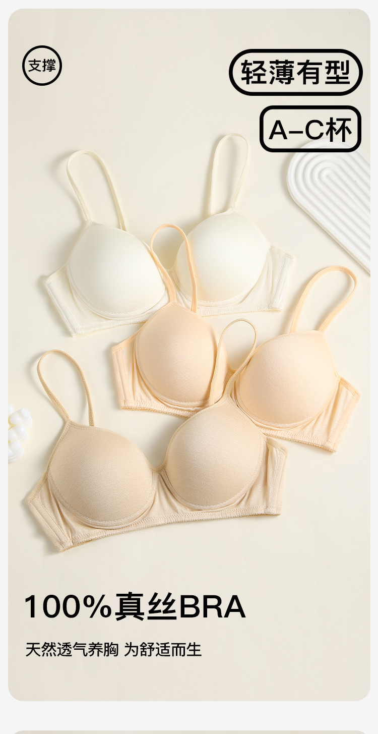 【100%桑蚕丝】真丝文胸天然养肤隐形无痕聚拢无钢圈舒适薄杯兮梦雅蝶