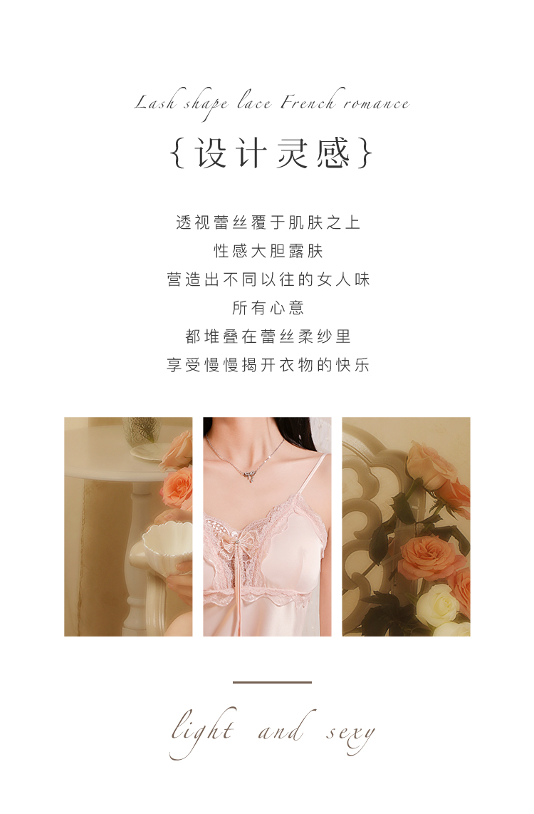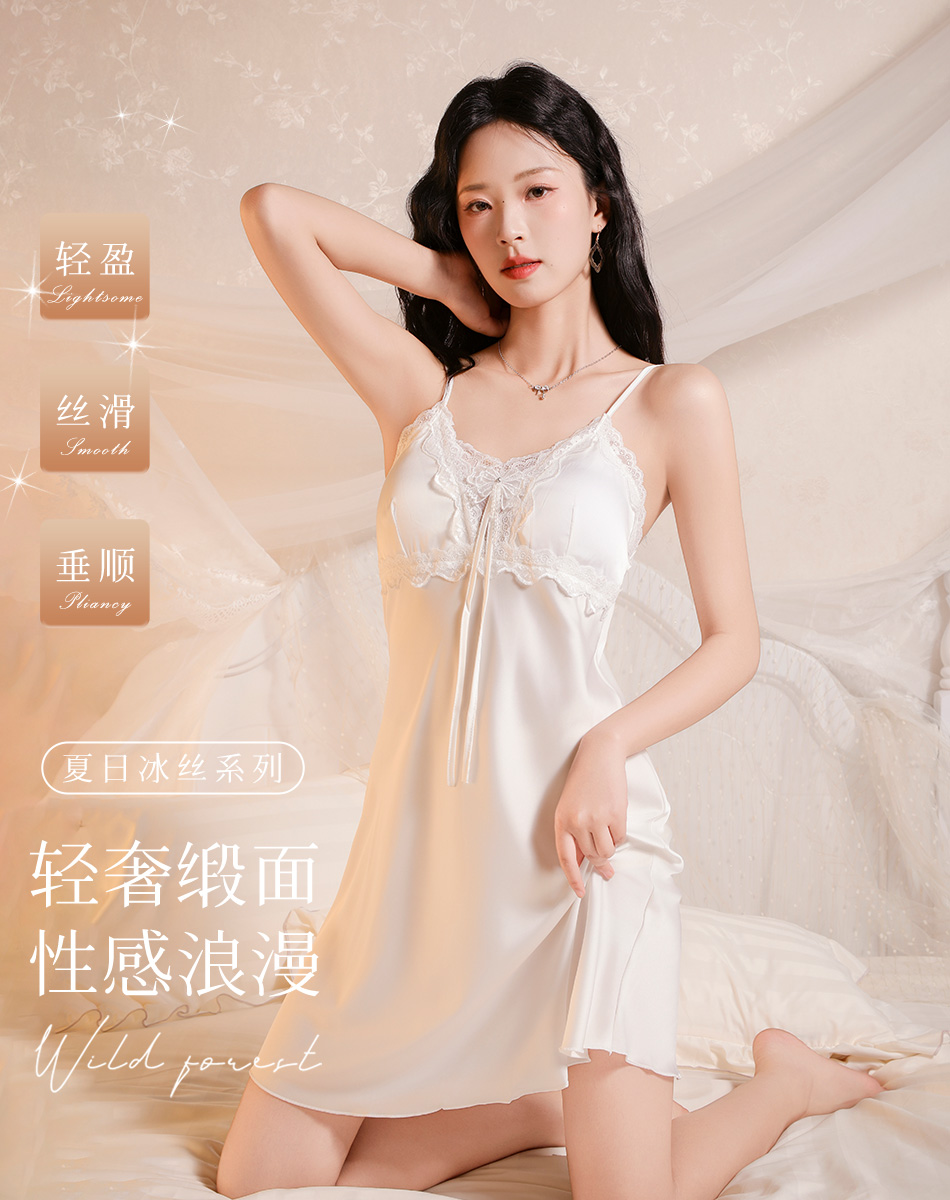【带胸垫】夏季薄款法式浪漫冰丝缎面蕾丝吊带睡裙女性感一字美背蝴蝶扇叶睡裙
