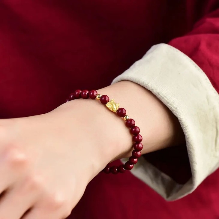 每一款都是诚意满满的匠心之作,造型别致,特别适合过年走亲戚、聚会佩戴,好玩有趣又时髦!每一款朱砂串,都搭配品牌礼盒,自用或者当做礼物赠送亲朋好友,再合适不过了。这可是今年新鲜出炉的龙年爆款,一上市就颇受欢迎,好评如潮!特别立体的小龙,龙角分明,表情呆萌可爱,不像平日看到那些怒目而视的龙,这个小龙一看就特别可爱。这小龙用的是宫廷烧珐琅工艺,渐变果冻珐琅细节,看起来非常精致并且有质感,晶莹Q萌,粉蓝色的阳光可爱,粉红色款的软萌动人。上色的颜料是天然的矿物料,灵动传神,佩戴手上,让人爱不释手,总想时时摆弄一下。除了这款果冻萌龙外,还有另一款福龙呈祥手串,同样是果冻般的粉蓝色和粉红色可选。自千年之前,我国古人对于朱砂就有着崇尚之情,爱它红的热烈、庄重、喜庆。在古代,上至帝王视其为吉瑞之色,下至百姓用以迎接新年。佩戴朱砂或者将朱砂摆放家中,寓意红红火火。恰好,咱们中国就是世界上出产朱砂多的国家之一,主要产地是贵州东部和湖南西部,以质好量多而出名。这些朱砂串,严选高含量紫金砂,颗颗都是由原矿朱砂采用古法压制而成,颜色偏紫红色,表面有星星点点的银色小颗粒和金属光泽。在压制成珠之后,还需要匠人师傅手工精细抛光,每一粒朱砂都要用砂纸一遍遍重复打磨,直到朱砂珠呈现天然油亮光泽,触感温润,质感极高。这样匠心制作的朱砂差,竟日日佩戴盘养,尤其经过岁月的洗礼和沉淀,更能养出其富贵、喜庆的色泽,寓意着生活幸福美满!火红的朱砂更是象征着美好的寓意,佩于腕间,把玩指上,如意安康。每一款手链,都出具有正规的鉴定证书,一物一证,一证一码,扫码可查。轻奢、日常,又不失典雅风雅,送人有面子,日常撑场面,可以说是谁戴谁好看!