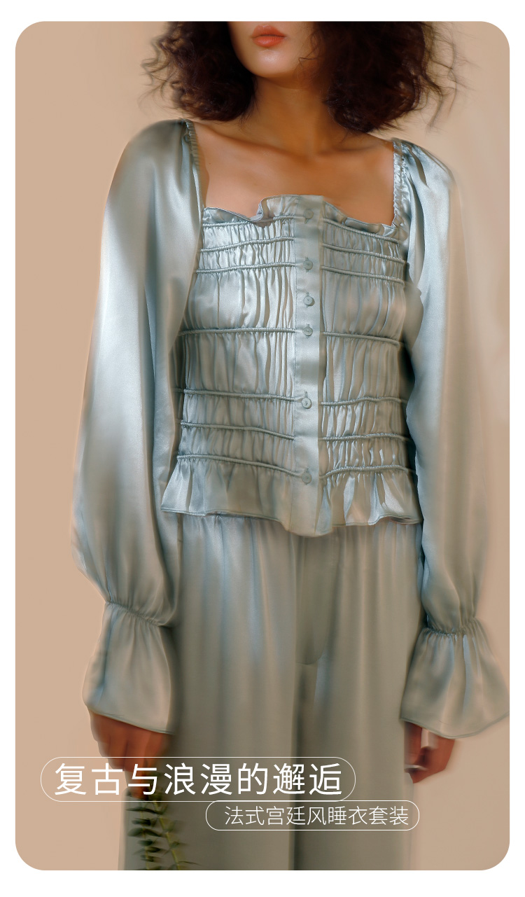SANGLUO法式宫廷风睡衣套装女桑蚕丝家居服可外穿