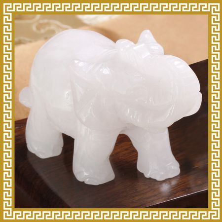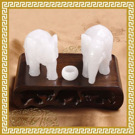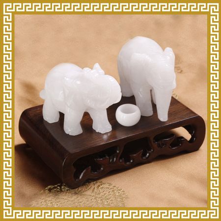 手工木座上摆放了一对以上等汉白玉雕琢而成的召米象,中间再放一个迷你玉钵。