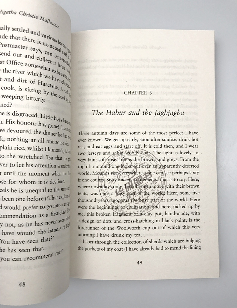 阿加莎·克里斯蒂原名为阿加莎·玛丽·克拉丽莎·米勒,1890年9月15日生于英国德文郡托基的阿什菲尔德宅邸。她几乎没有接受过正规的教育,但酷爱阅读,尤其痴迷于歇洛克·福尔摩斯的故事。 一战期间,阿加莎·克里斯蒂成了一名志愿者。战争结束后,她创作了自己的第1部侦探小说《斯泰尔斯庄园奇案》。几经周折,作品于1920年正式出版,由此开启了克里斯蒂辉煌的创作生涯。1926年,《罗杰疑案》由哈珀柯林斯出版公司出版。这部作品一举奠定了阿加莎·克里斯蒂在侦探文学领域不可撼动的地位。阿加莎·克里斯蒂的创作生涯持续了50余年,总共创作了80部侦探小说。她的作品畅销全世界100多个国家和地区,累计销量已经突破20亿册。阿加莎·克里斯蒂是柯南·道尔之后伟大的侦探小说作家,是侦探文学黄金时代的开创者和集大成者。1971年,英国女王授予克里斯蒂爵士称号,以表彰其不朽的贡献。 1976年1月12日,阿加莎·克里斯蒂逝世于英国牛津郡沃灵福德家中,被安葬于牛津郡的圣玛丽教堂墓园,享年85岁。 Agatha Christiewas born in Torquay in 1890 and became, quite simply, the best-selling novelist in history. Her first novel, The Mysterious Affair at Styles, written towards the end of the First World War, introduced us to Hercule Poirot, who was to become the most popular detective in crime fiction since Sherlock Holmes. She is known throughout the world as the Queen of Crime. Her books have sold over a billion copies in the English language and another billion in over 100 foreign countries. She is the author of 80 crime novels and short story collections, 19 plays, and six novels under the name of Mary Westmacott. In a few weeks’ time we are starring for Syria! Shopping for a hot climate in autumn or winter presents certain difficulties. One’s last year’s summer clothes, which one has optimistically hoped will ‘do’, do not ‘do’ now the time has come. For one thing they appear to be (like the depressing annotations in furniture removers’ lists) ‘Bruised, Scratched and Marked’. (And also Shrunk, Faded and Peculiar!) For another—alas, alas that one has to say it!—they are too tight everywhere. So—to the shops and the stores, and: ‘Of course, Modom, we are not being asked for that kind of thing just now! We have some very charming little suits here—O.S. in the darker colours.’ Oh, loathsome O.S.! how humiliating to be O.S.! How even more humiliating to be recognized at once as O.S.! (Although there are better days when, wrapped in a lean long black coat with a large fur collar, a saleswoman says cheeringly:‘But surely Modom is only a Full Woman?’) I look at the little suits, with their dabs of unexpected fur and their pleated skirts. I explain sadly that what I want is a washing silk or cotton. ‘Modom might try Our Cruising Department.’ Modom tries Our Cruising Department—but without any exaggerated hopes. Cruising is still enveloped in the realms of romantic fancy. It has a touch of Arcady about it. It is girls who go cruising—girls who are slim and young and wear uncrushable linen trousers, immensely wide round the feet and skintight round the hips. It is girls who sport delightfully in Play Suits. It is girls for whom Shorts of eighteen different varieties are kept! The lovely creature in charge of Our Cruising Department is barely sympathetic.