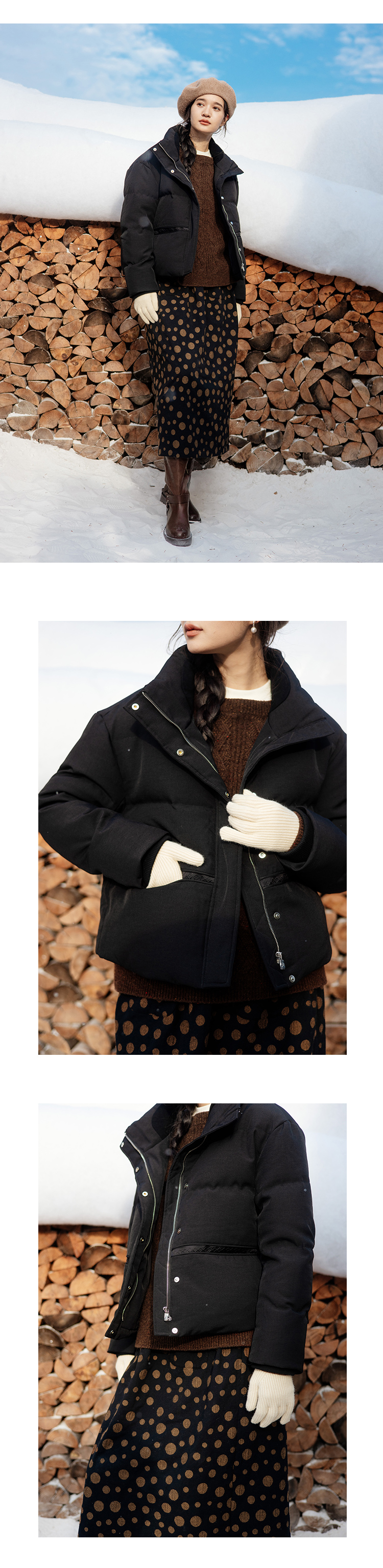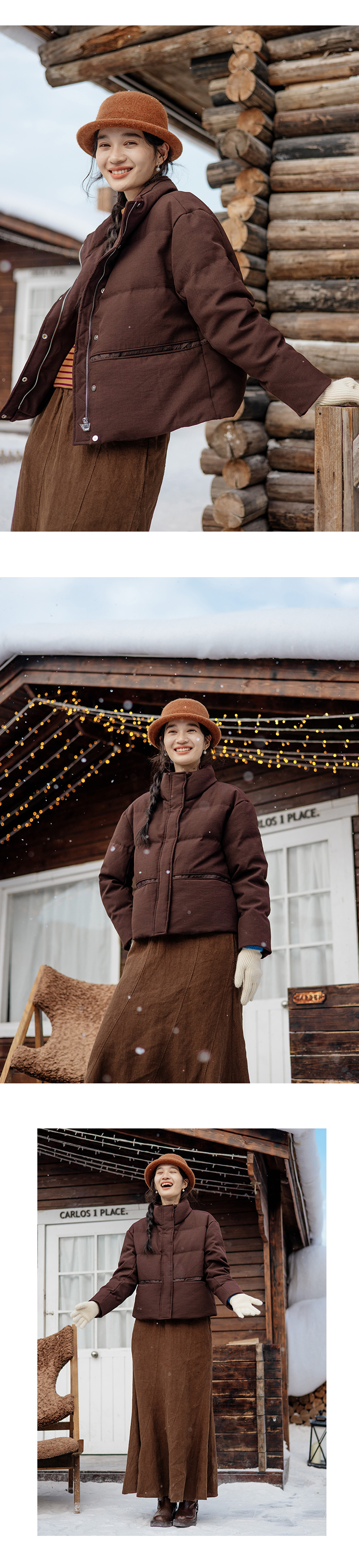 绽放885朵/巧克力泡芙羽绒服冬季90白鹅绒宽松显瘦立领短款面包服