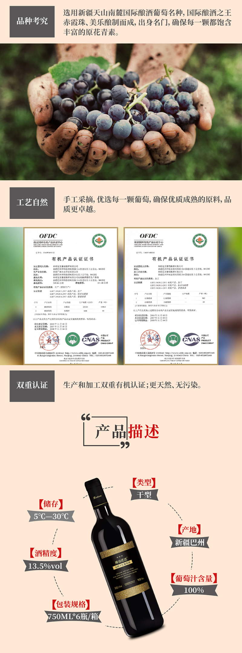 【博真优选】有机干红葡萄酒二钻(750ml)到期日2028.07.09