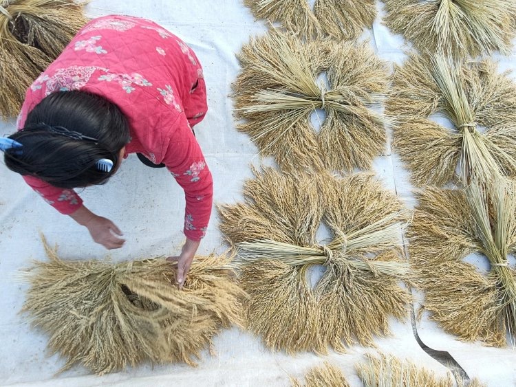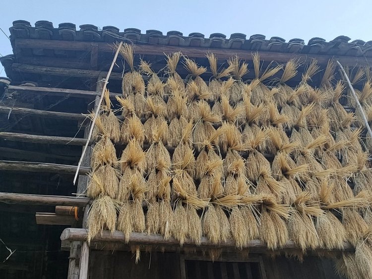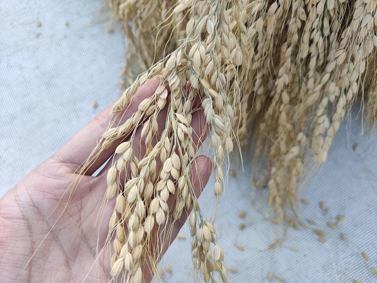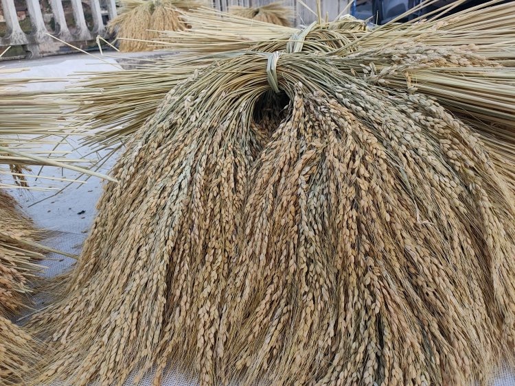 晒好的香禾糯,芒是很硬很锋利的。