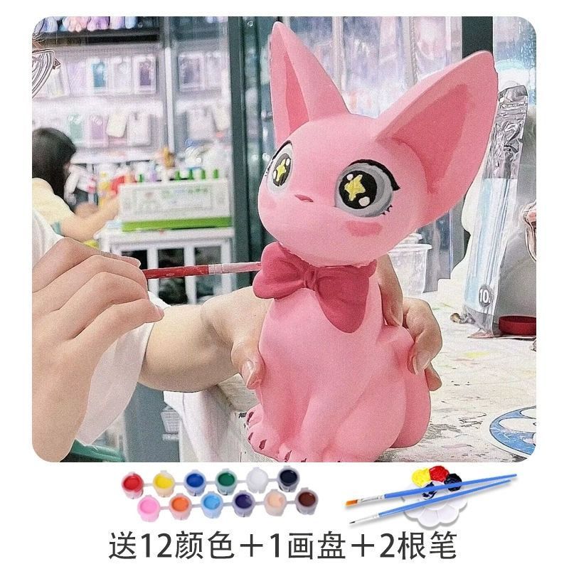 埃及吉吉猫石膏娃娃涂色diy陶瓷大号存钱罐手工彩绘白胚摆件网红