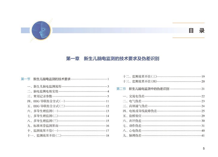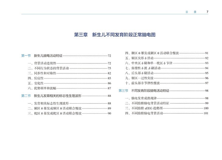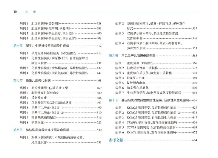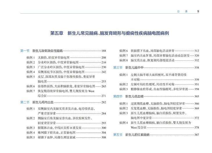1. 内容包含新生儿脑电图应用的基本技术规范、脑电图基本标准名词术语、图形定义、发育中脑电活动特征,以及损伤与发作性疾病脑电活动改变与诊断。