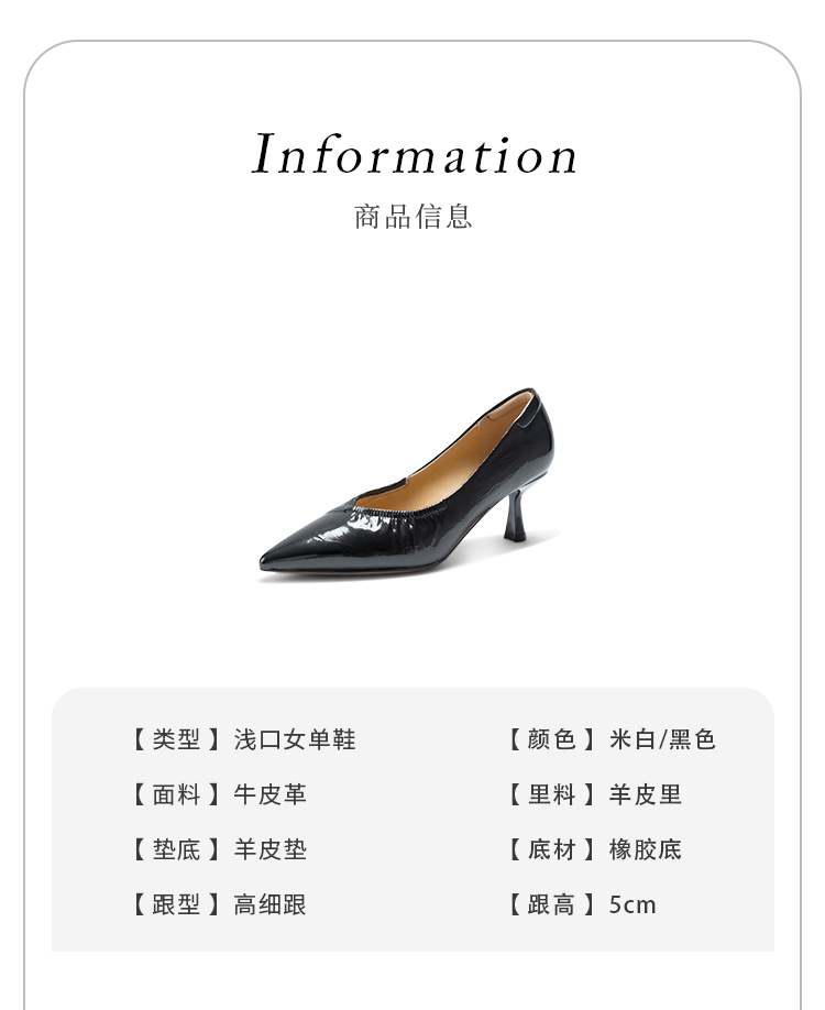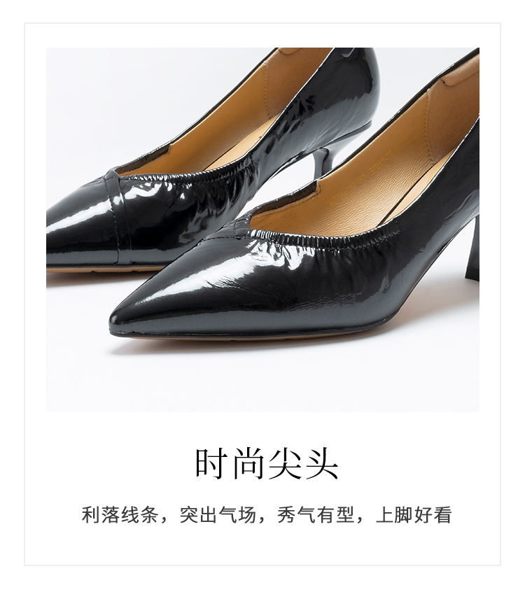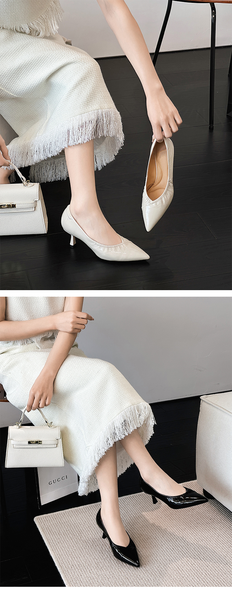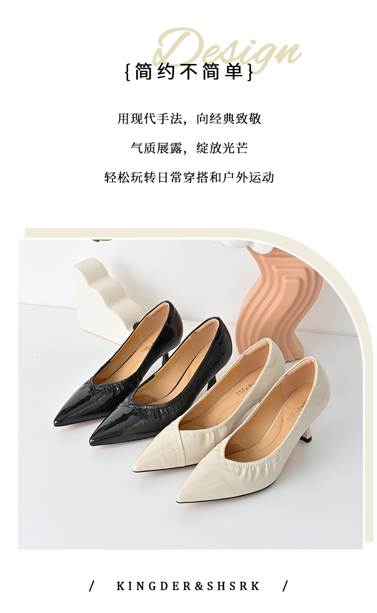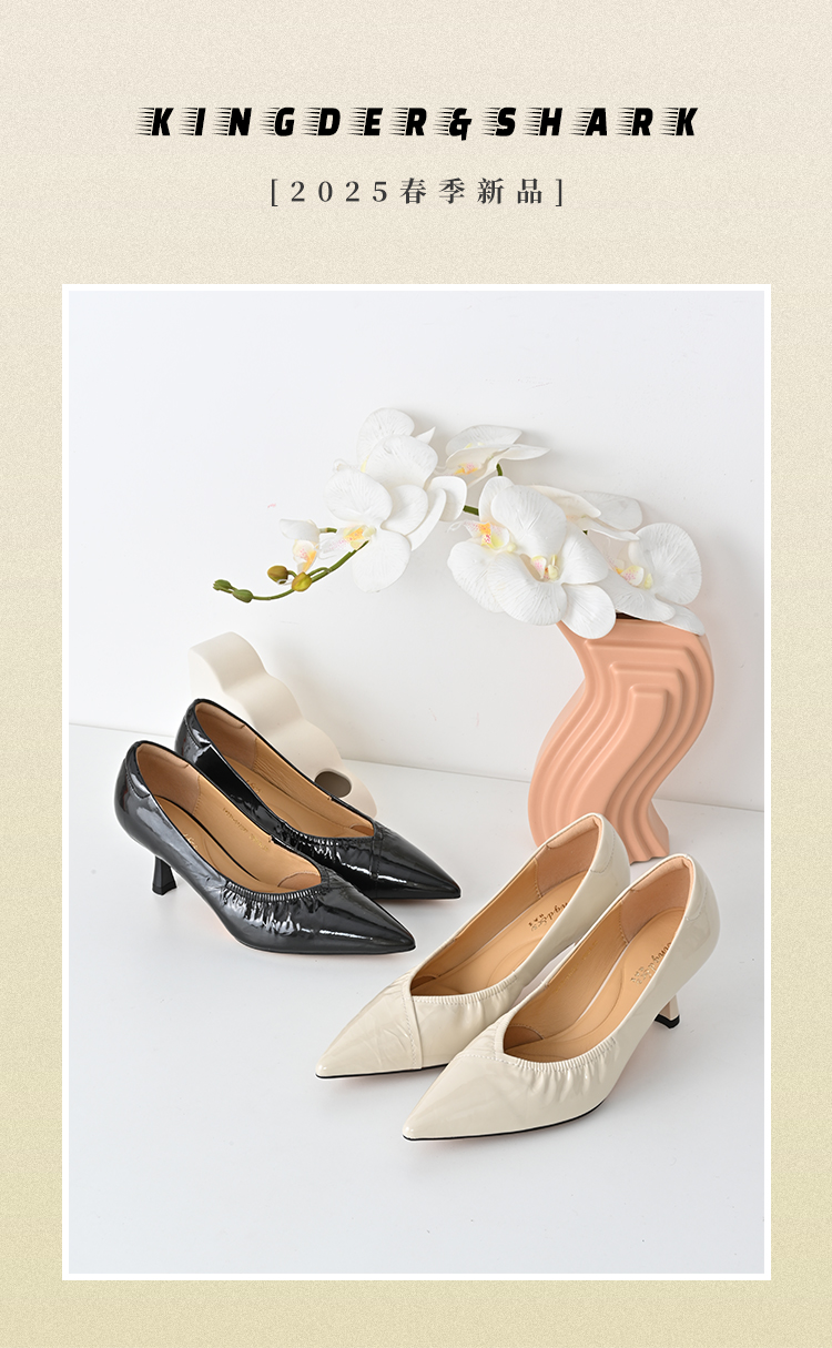 经典鲨2025年春季新品纯色优雅尖头浅口中细跟通勤高跟鞋女KW333-517021