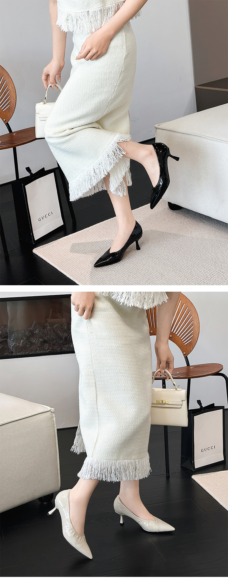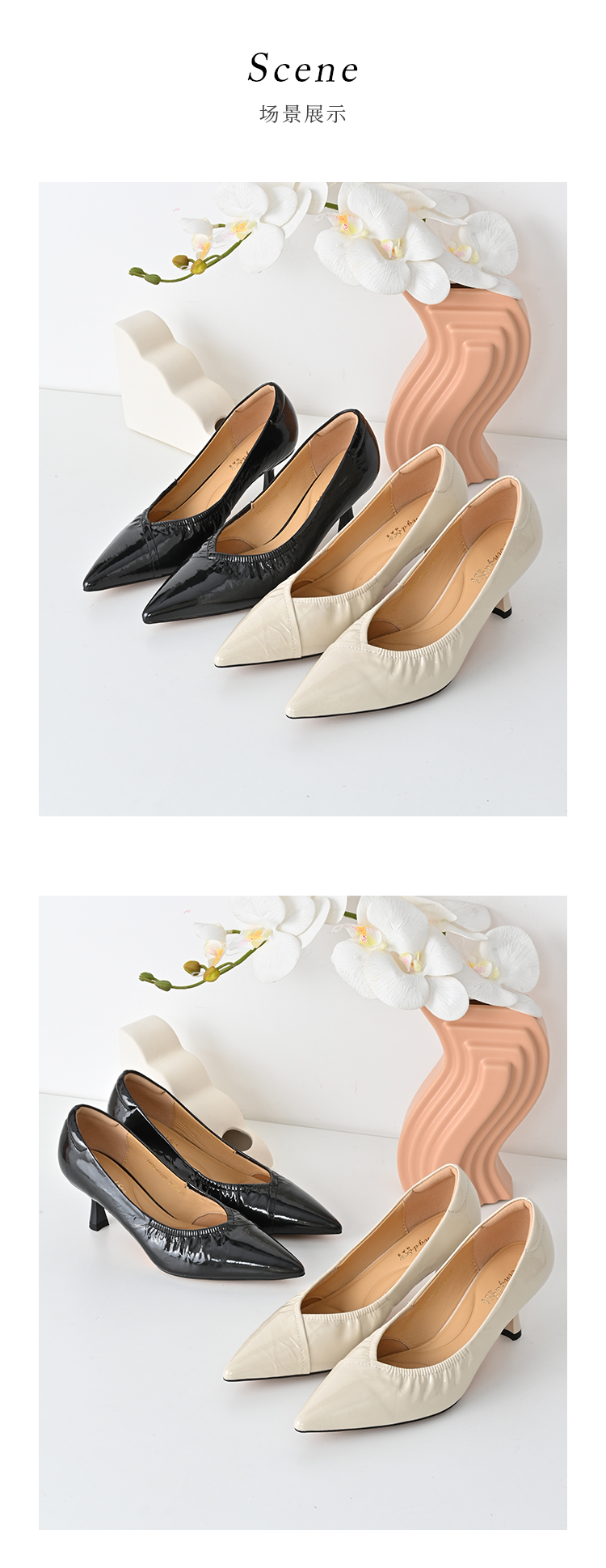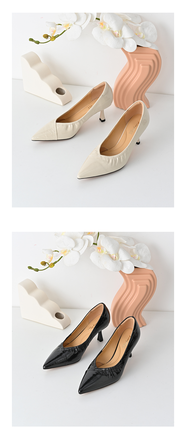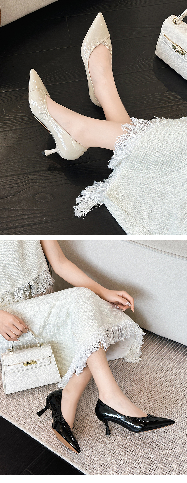 经典鲨2025年春季新品纯色优雅尖头浅口中细跟通勤高跟鞋女KW333-517021