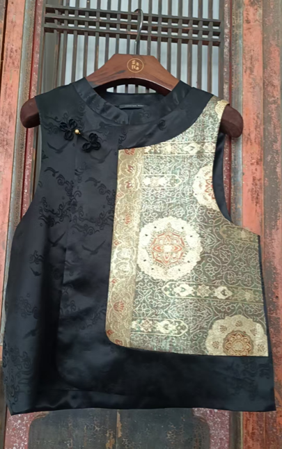 盛唐牡丹 |花锦缎喜鹊纹双面穿马甲