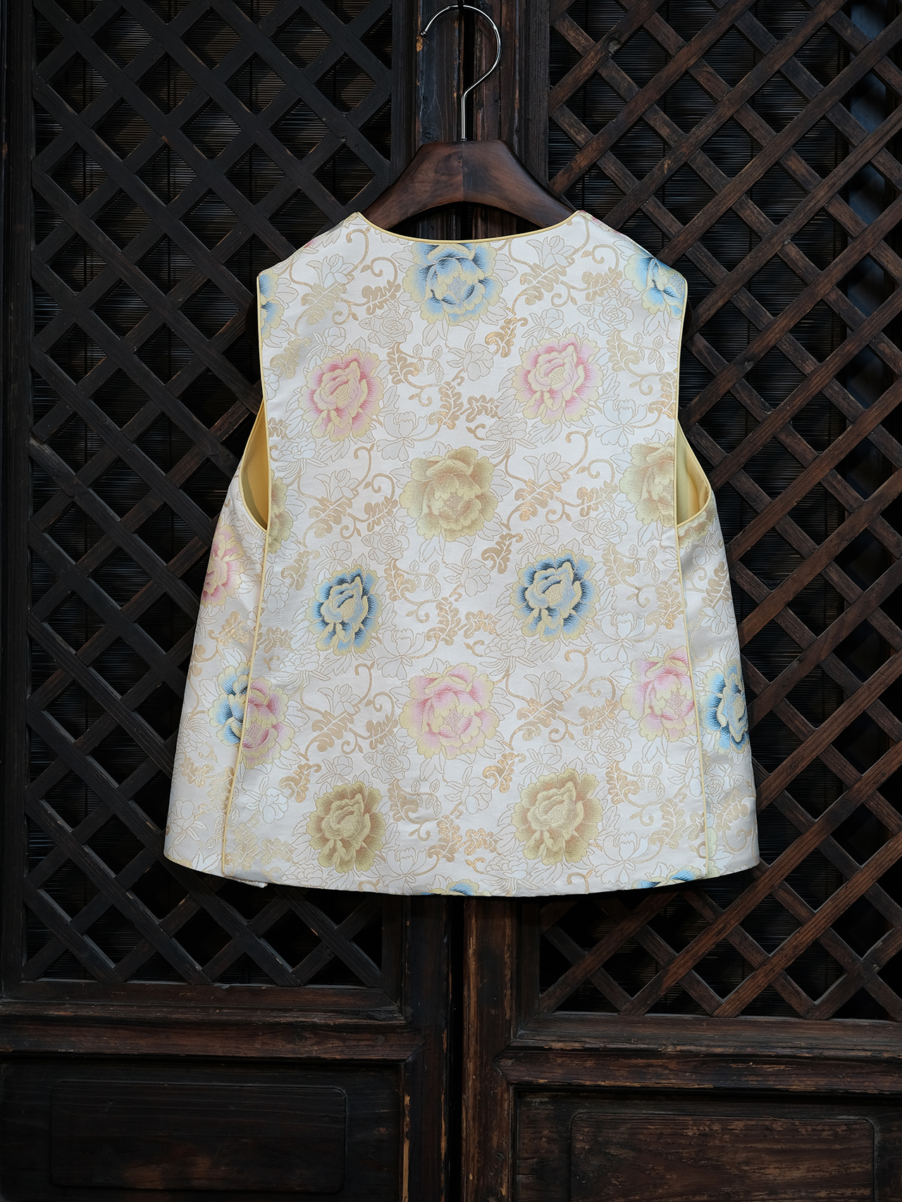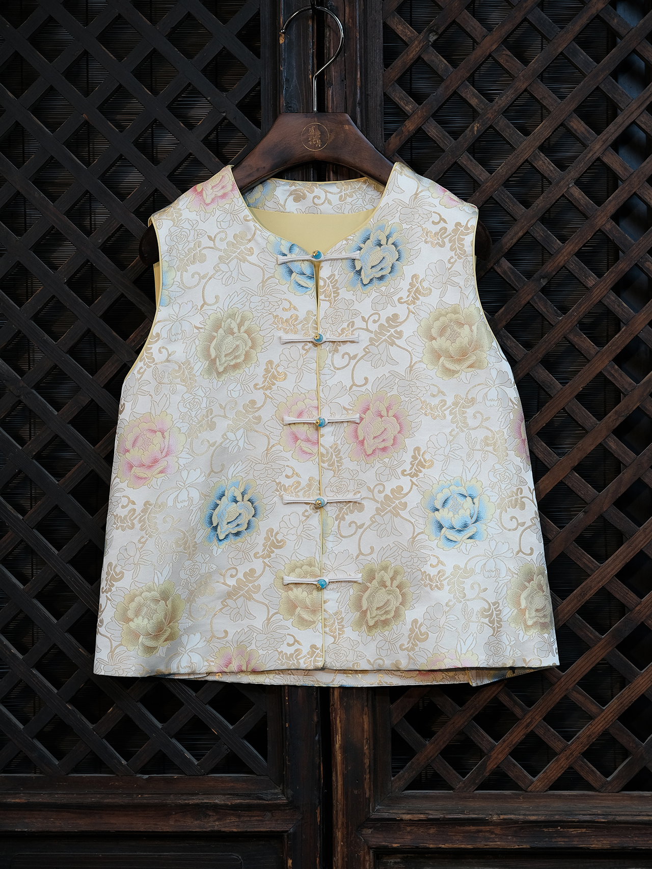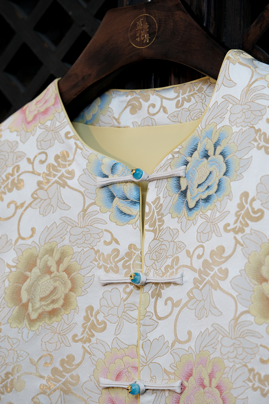 盛唐婧 |中式国风织金云锦牡丹花马甲