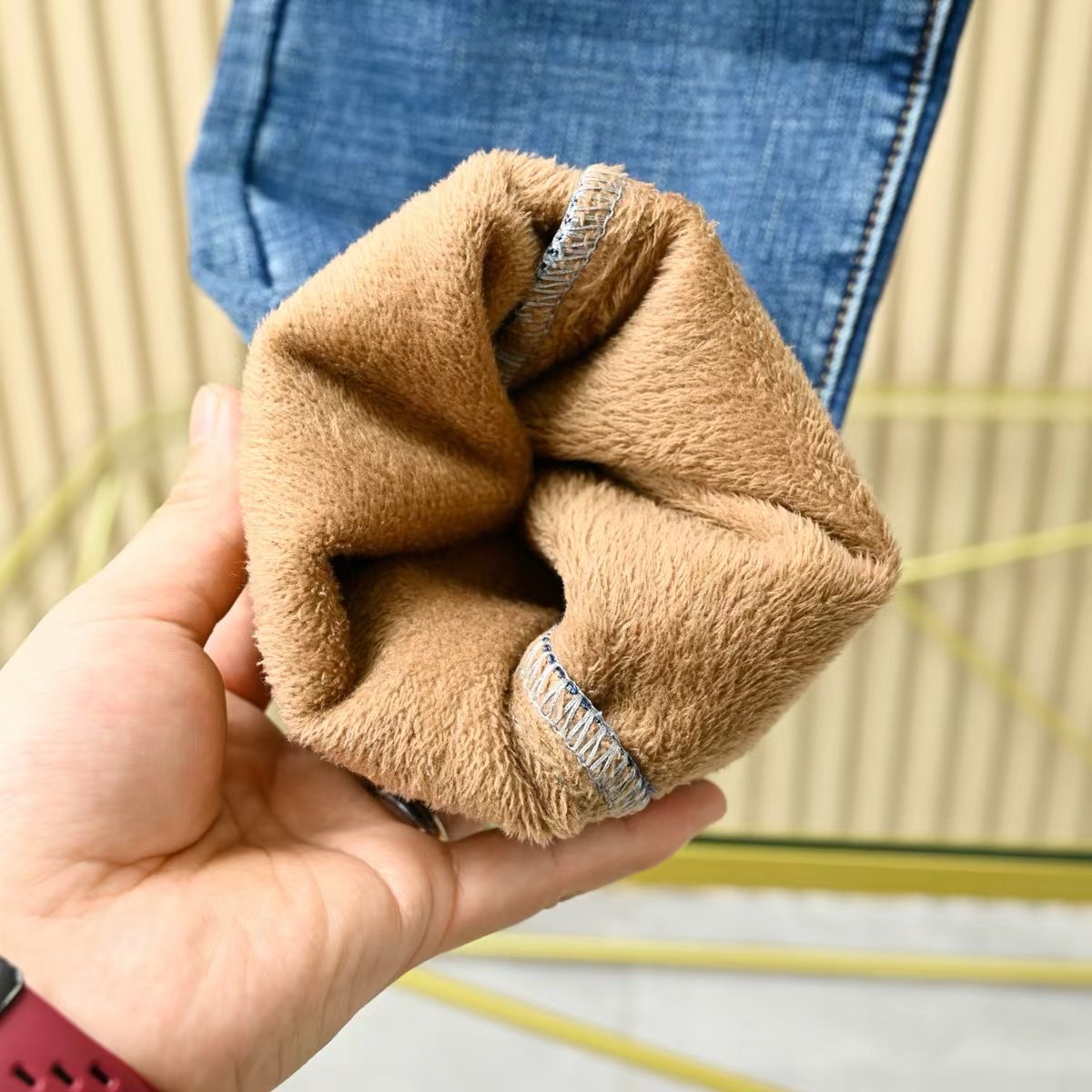牛仔裤面料经过特殊工艺处理,具有免烫、抗皱、防静电、不粘毛的特性!