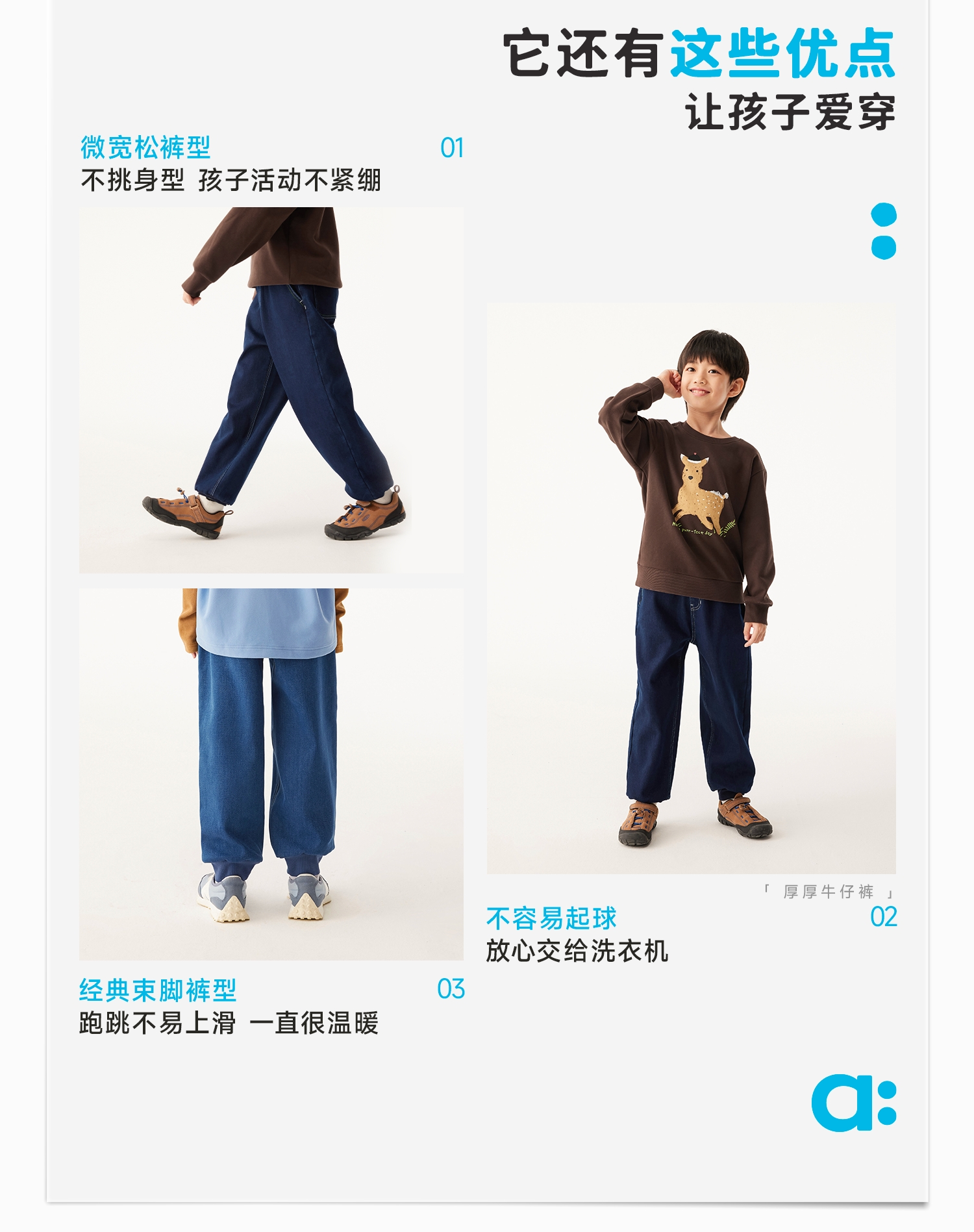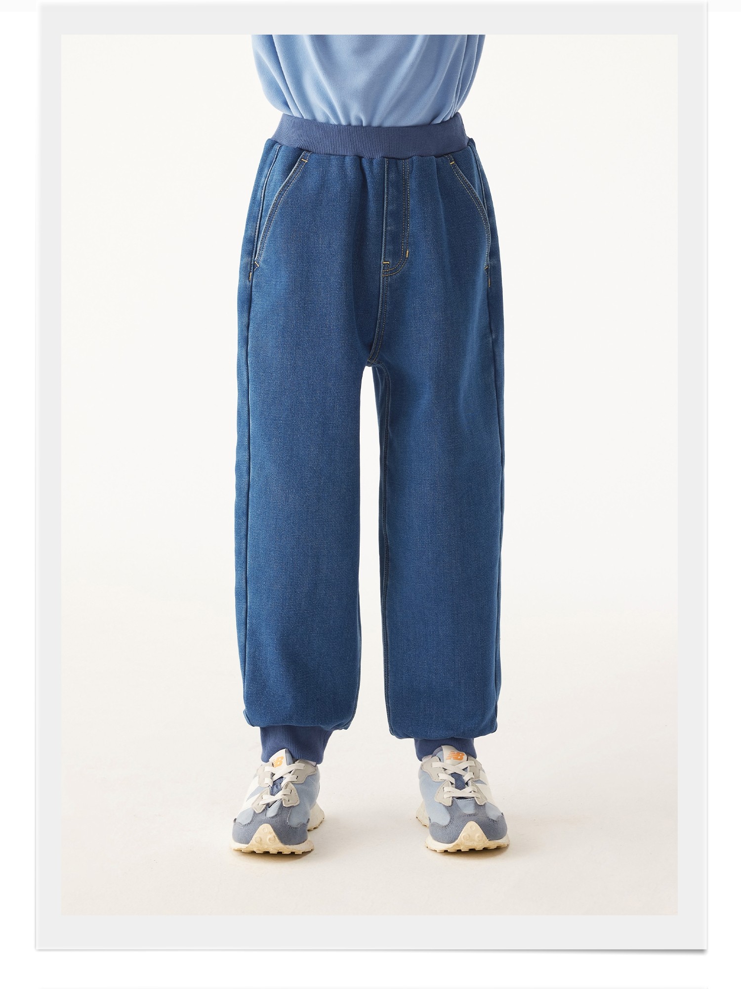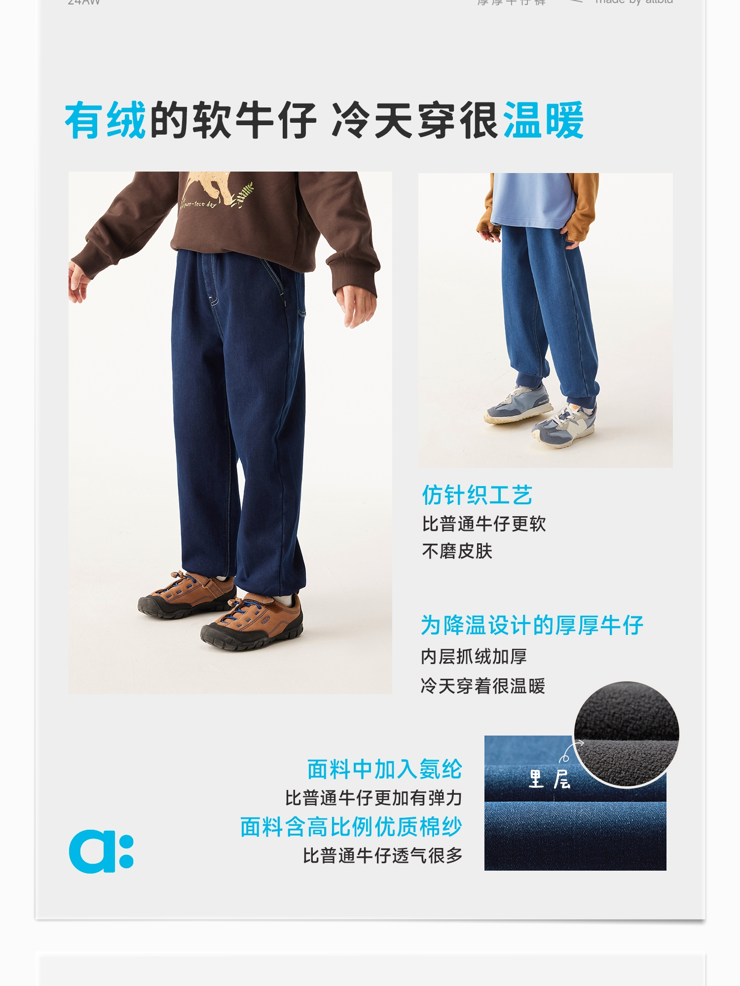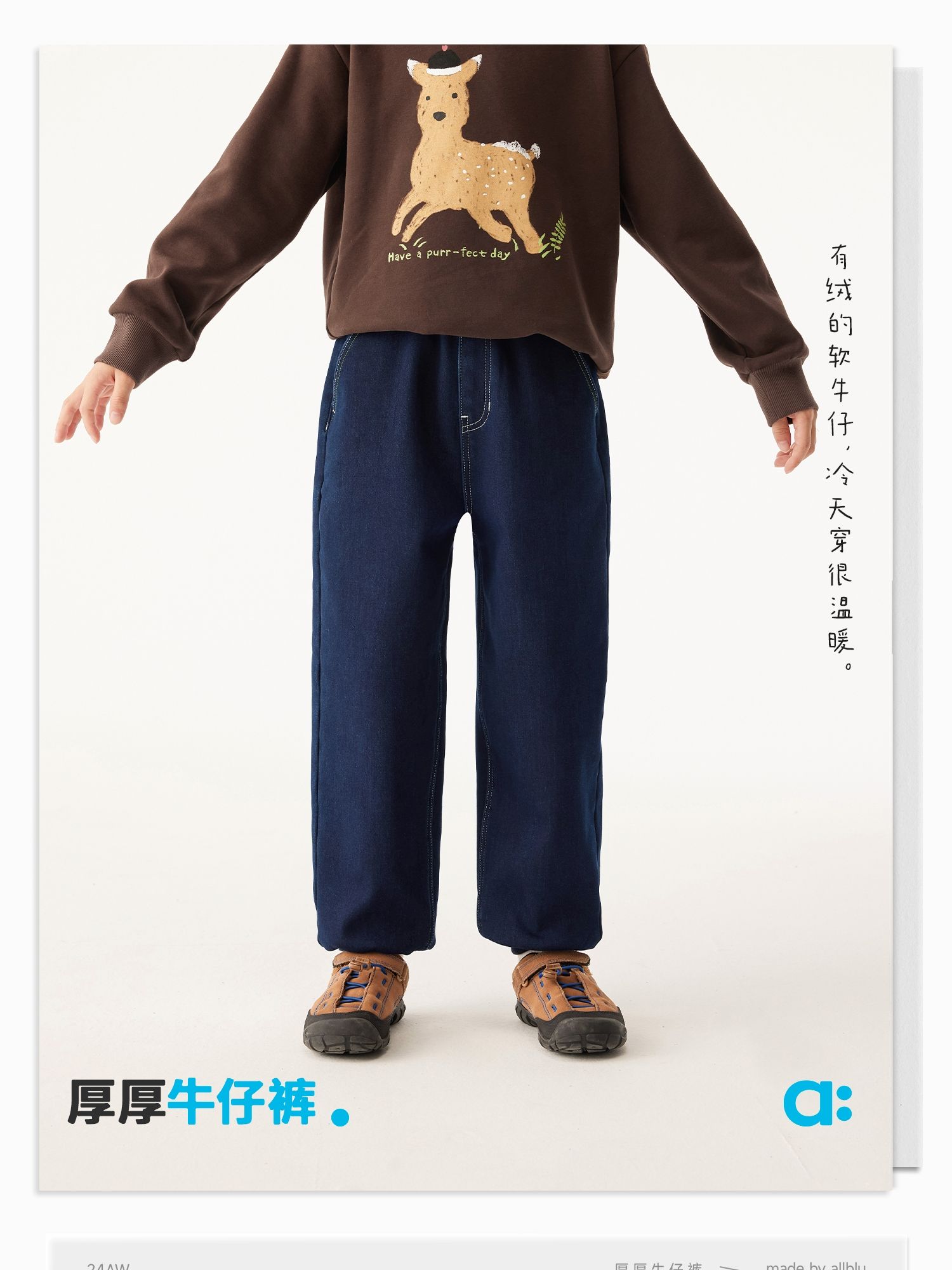 门店限定-【单件直降】【冬Vol.1】幼岚童装加绒加厚抓绒柔软弹力透气24年冬新款厚厚牛仔裤男童女童ZY