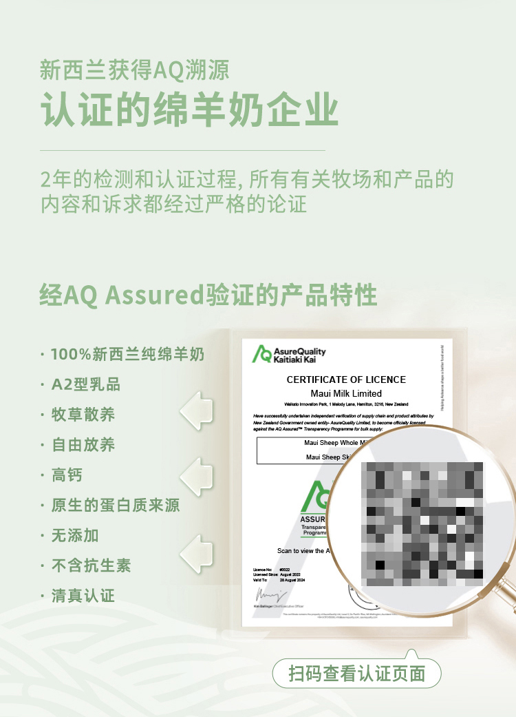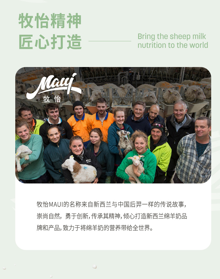 Maui——新西兰规模最大、实力最强、发展最快的绵羊奶全产业链运营集团。 以“健康”“安全”“纯净”及“自然”为生产理念,纯正、无添加、无污染,致力于为消费者提供最优质的纯净绵羊奶。