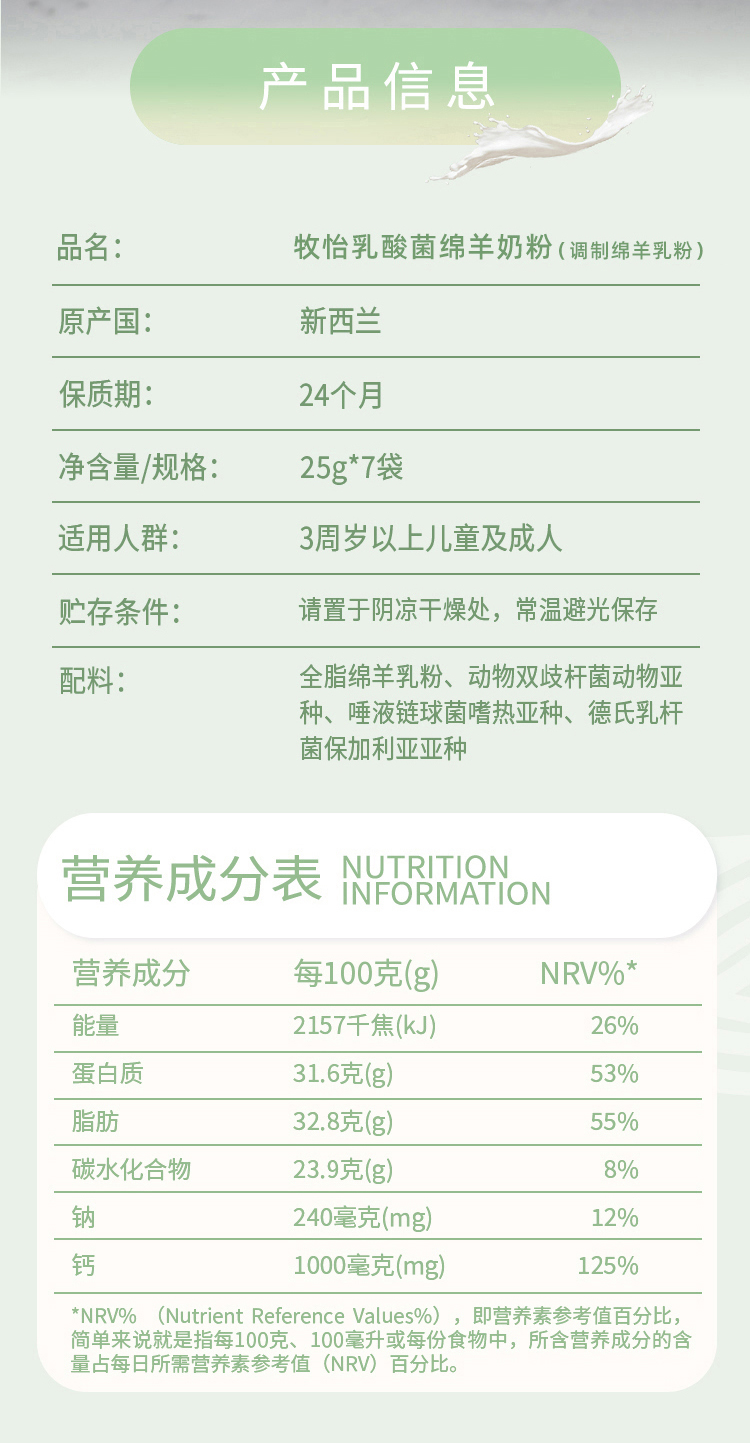 Maui牧怡新西兰进口乳酸菌绵羊奶粉