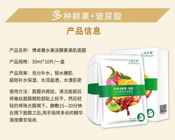 【面膜】博卓雅水果酵素双层蚕丝面膜贴补水保湿