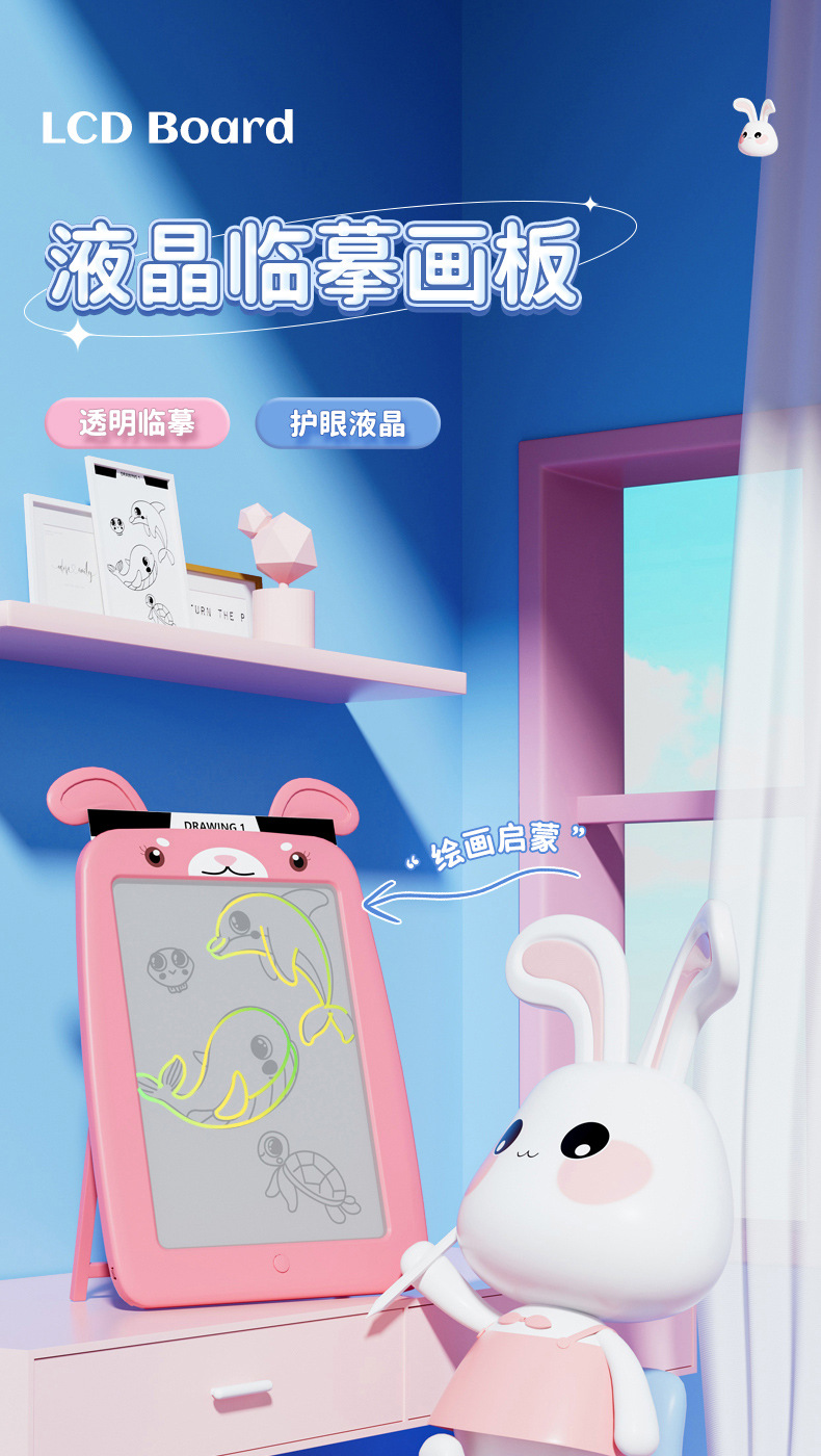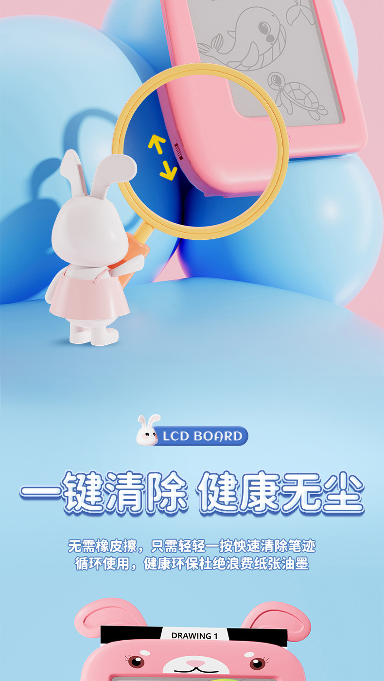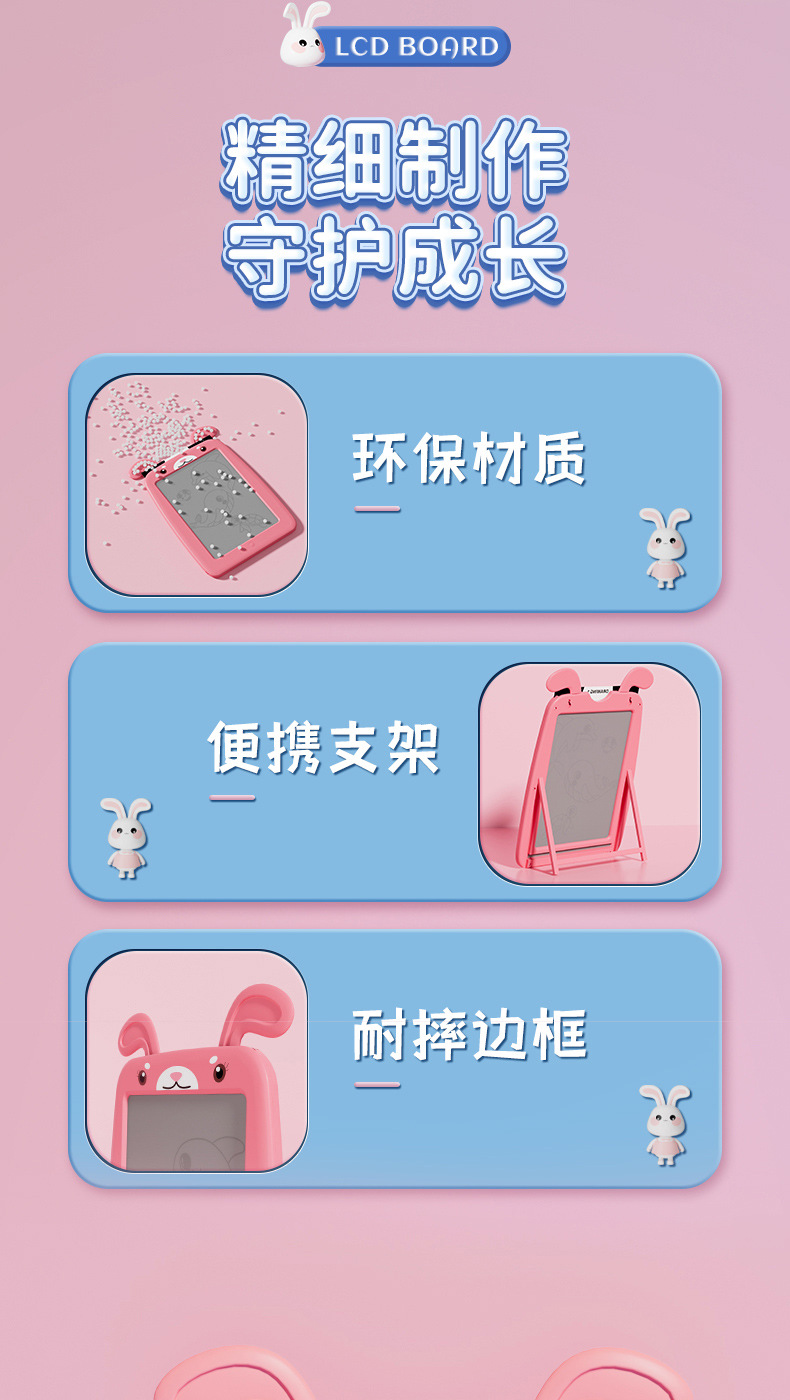 *【母婴用品】爆款兔子儿童画板涂鸦画画液晶手写板小黑板家用宝宝写字板