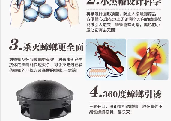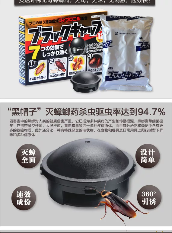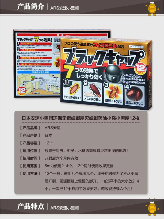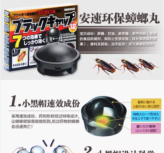 日本安速黑帽蟑螂屋家灭蟑小强6个装(3枚2盒)/12枚装日本安速蟑螂药胶饵