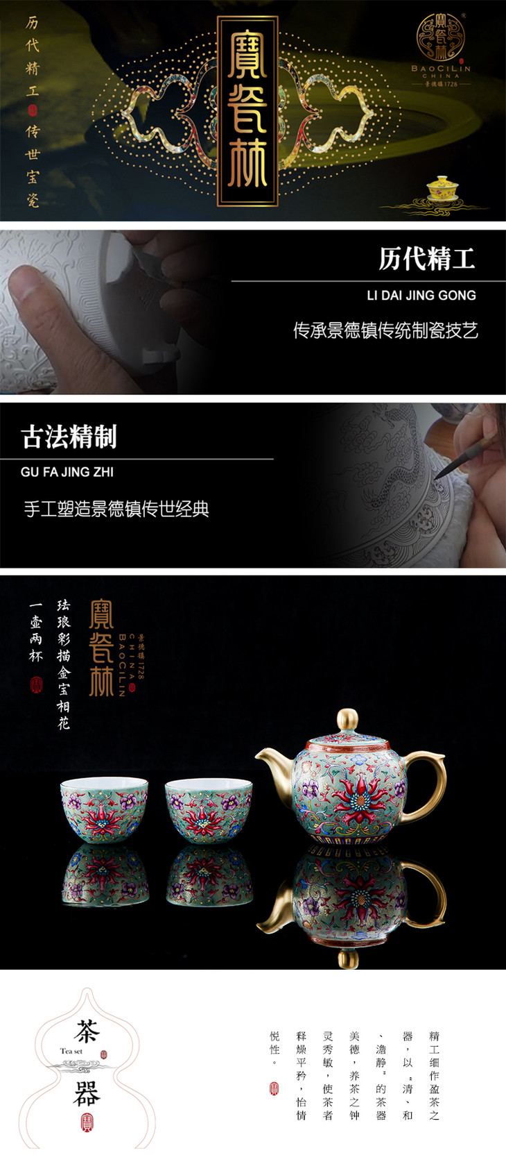 宝瓷林,2008年创立,是一家将传统清宫官窑制瓷技艺,移植于当代家居日用瓷品上的景德镇陶瓷骨干企业,是当下唯一一家代表“千年瓷都-景德镇”走向全球的陶瓷连锁品牌,被誉为陶瓷界的“国酒茅台”。