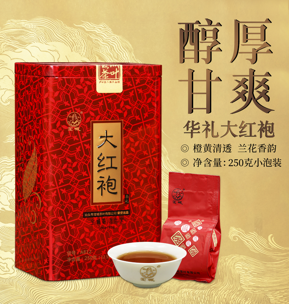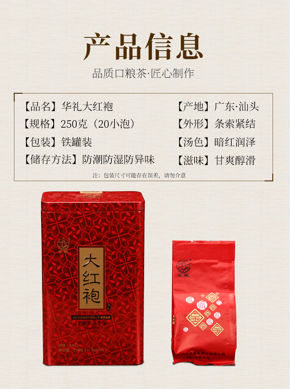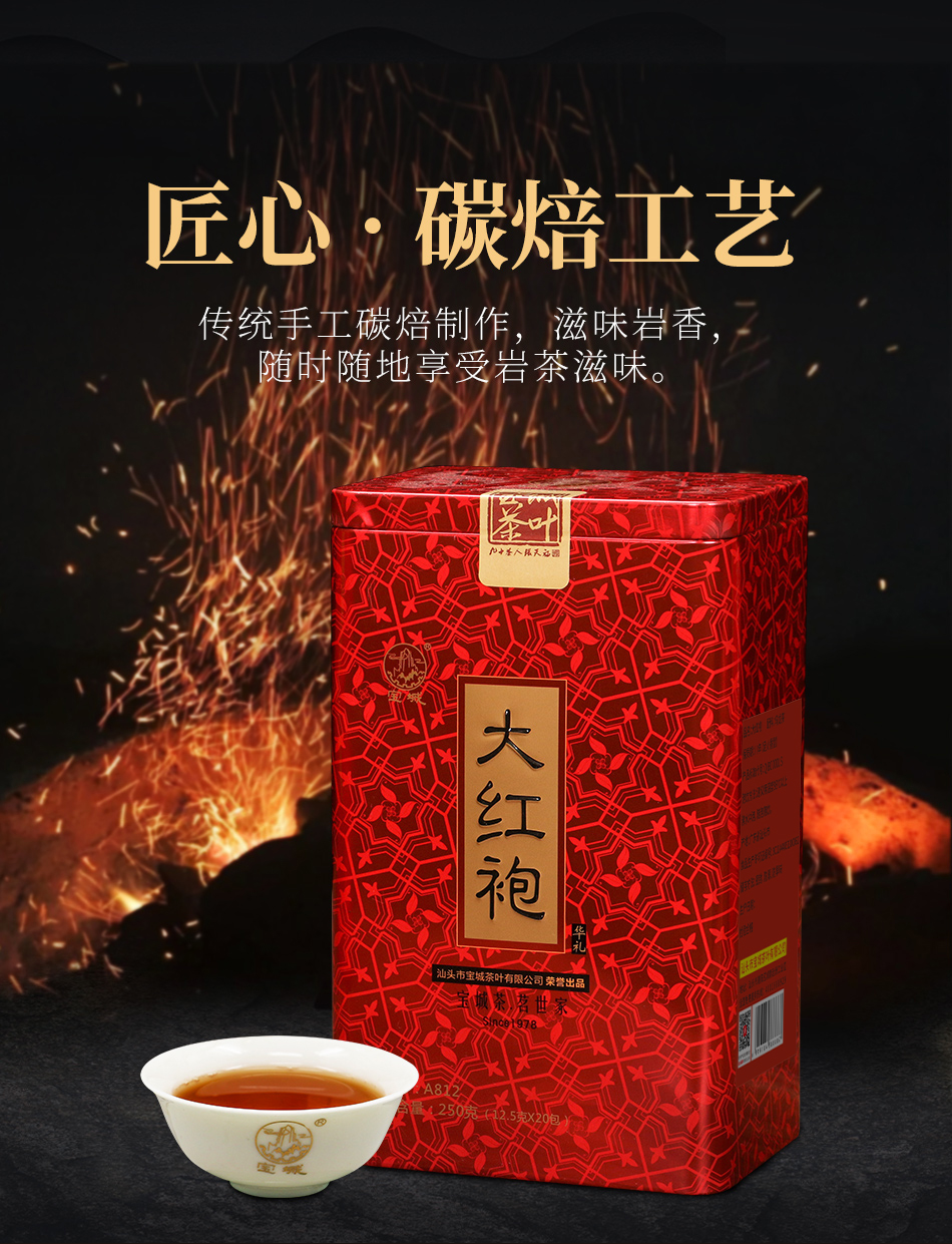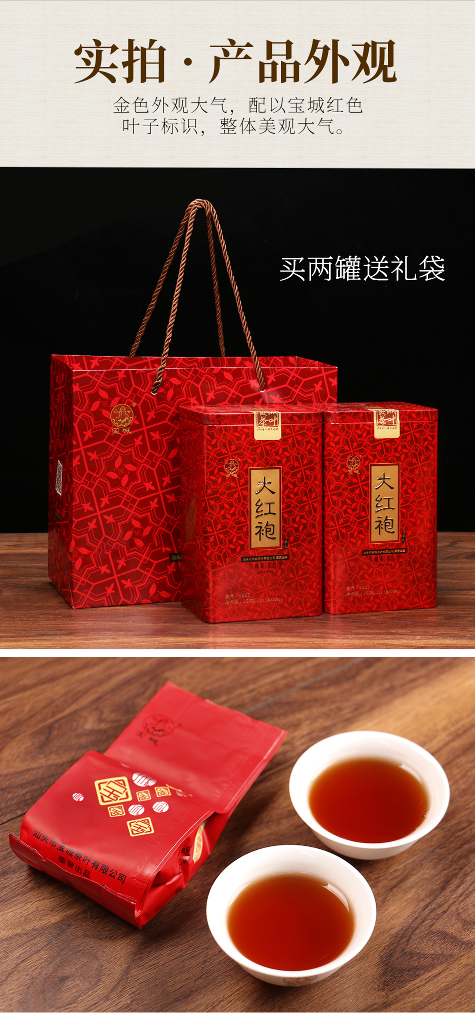 宝城华礼大红袍茶叶两罐装共500克茶浓香型乌龙茶礼盒装A812