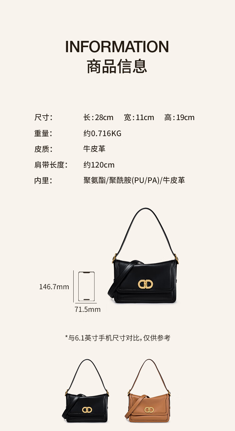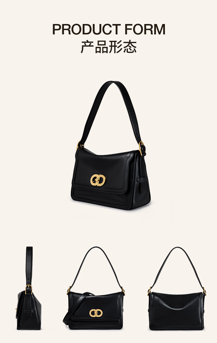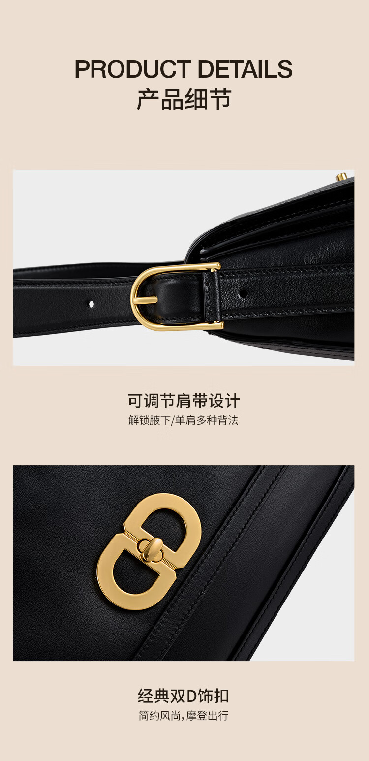 【2F】DISSONA迪桑娜女包 DD流金小方包时尚手提单肩包真皮斜挎包腋下包 黑色