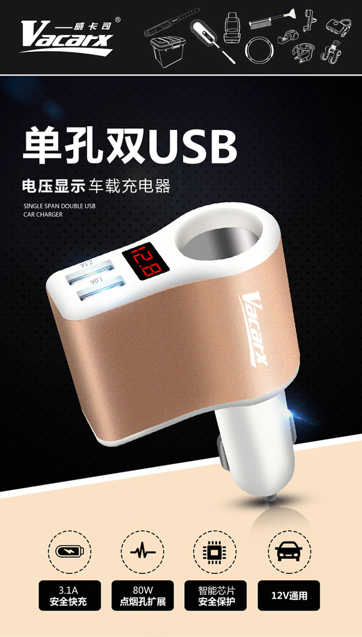 (永久下架)威卡司车载充电器 商品图0