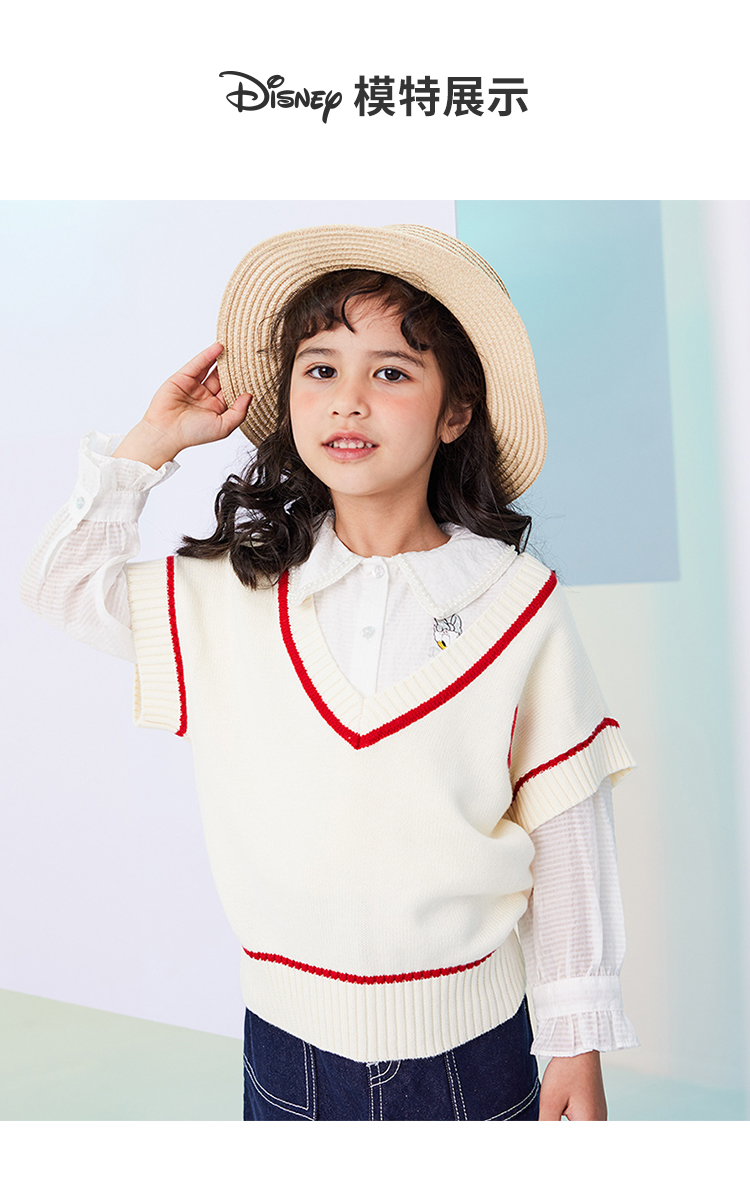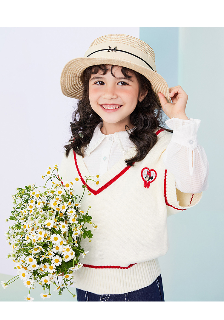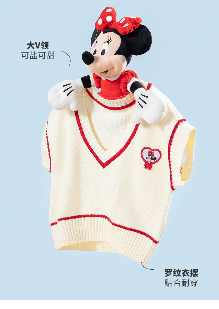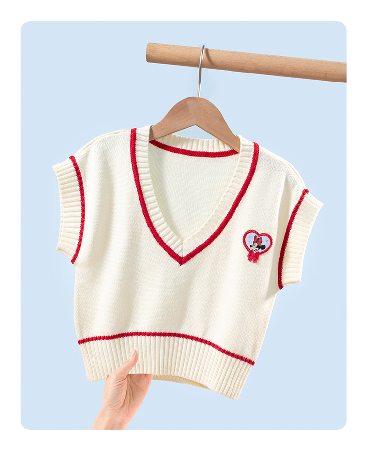 【商场同款】迪士尼童装女童针织马甲潮搭桃心领中大童女孩宝宝背心马甲春秋季