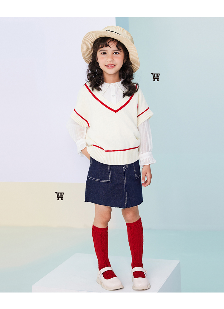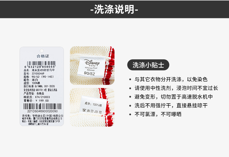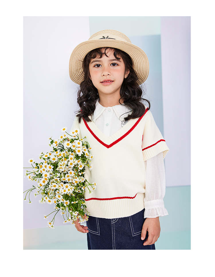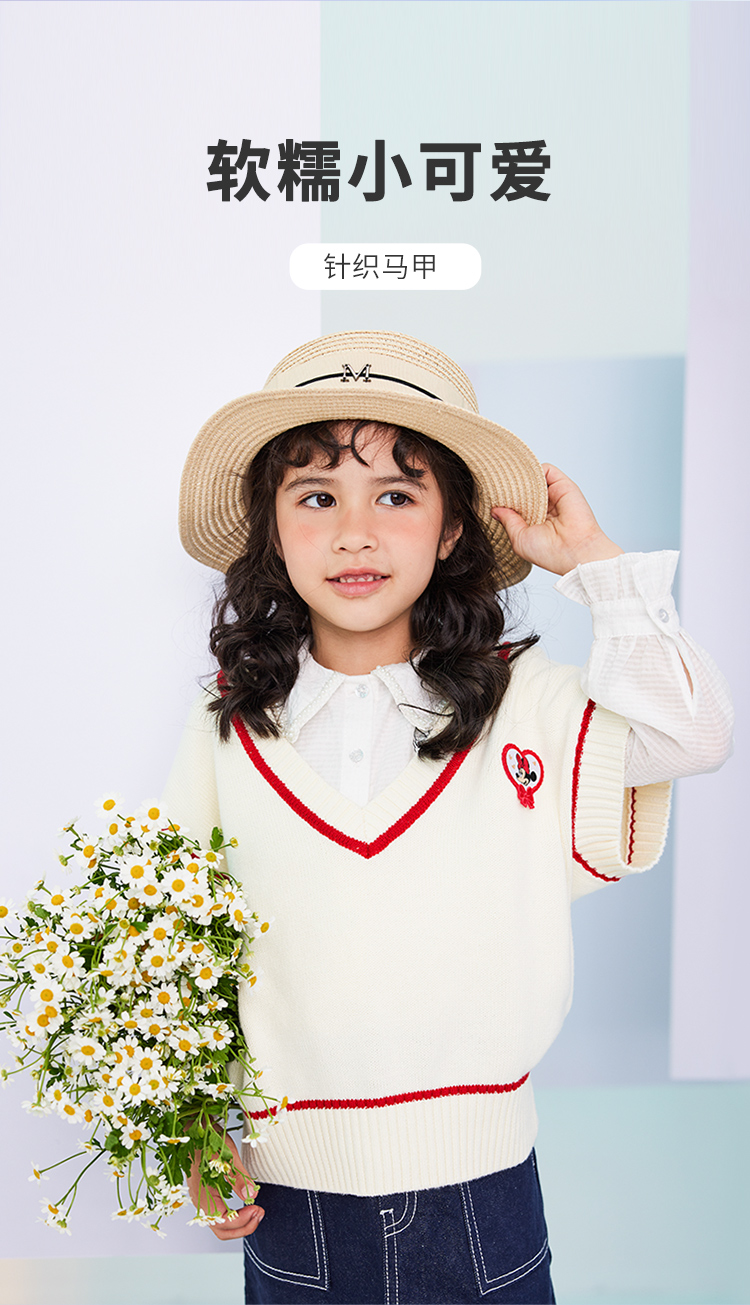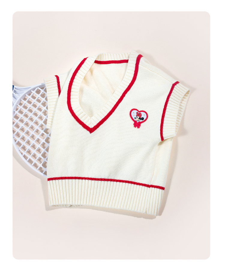 【商场同款】迪士尼童装女童针织马甲潮搭桃心领中大童女孩宝宝背心马甲春秋季