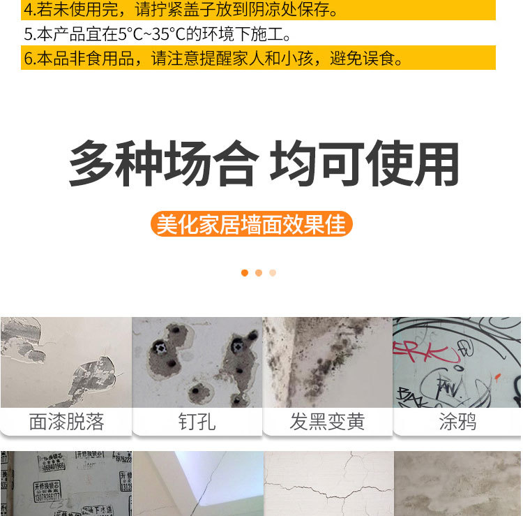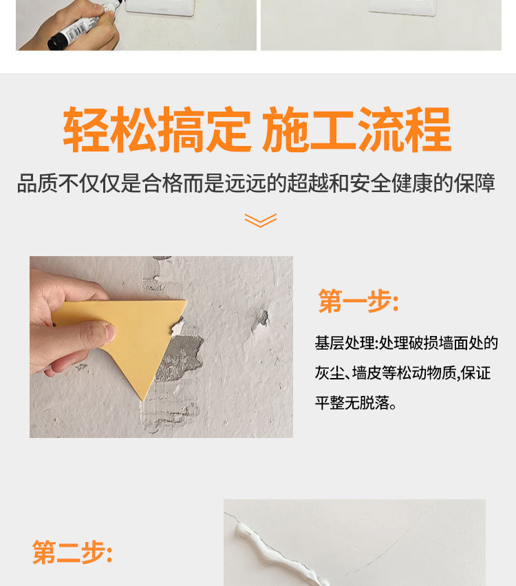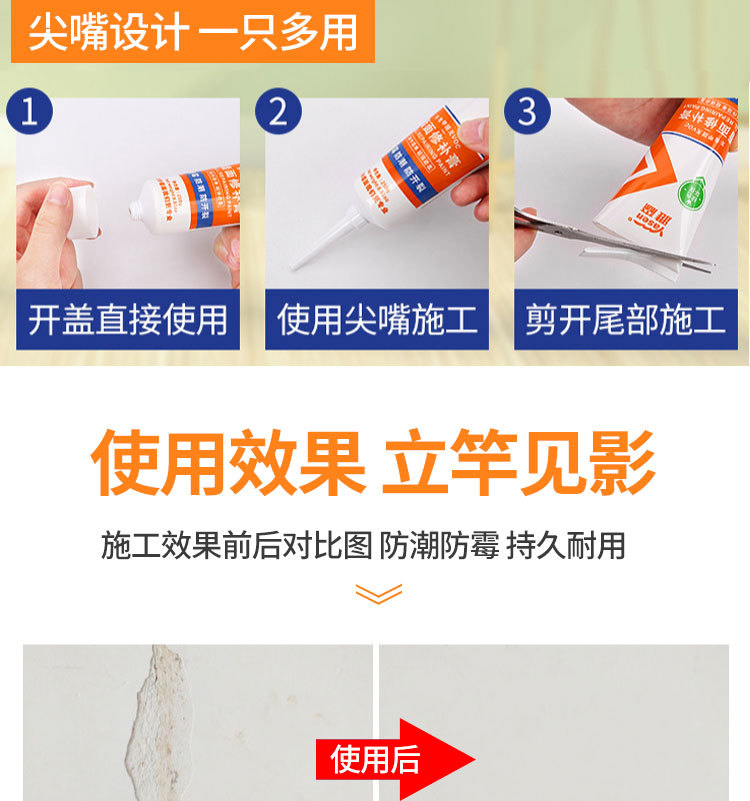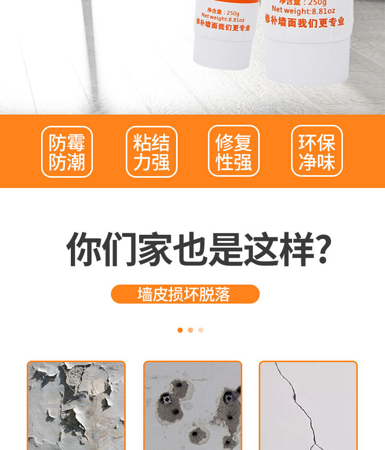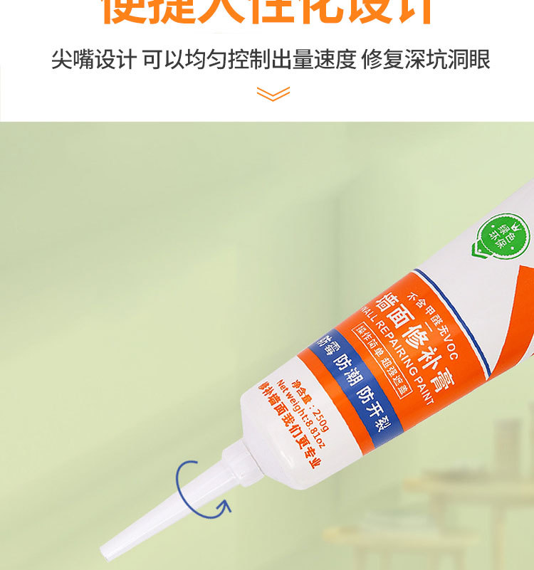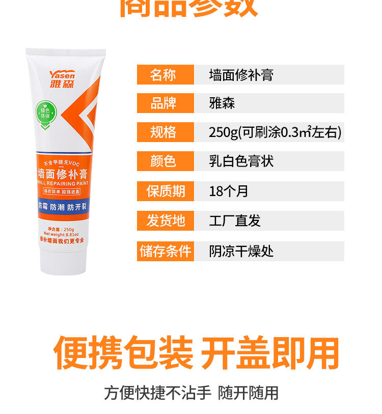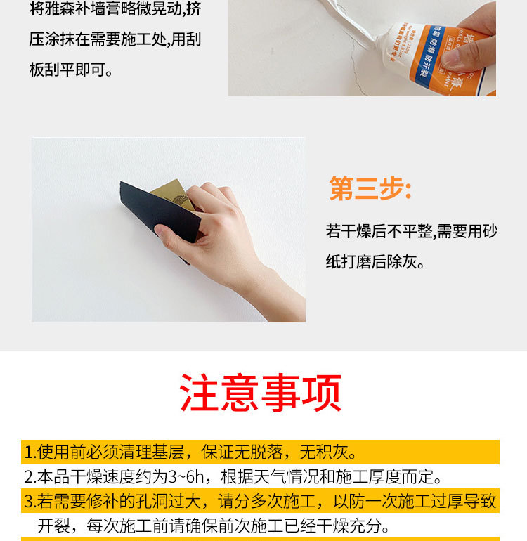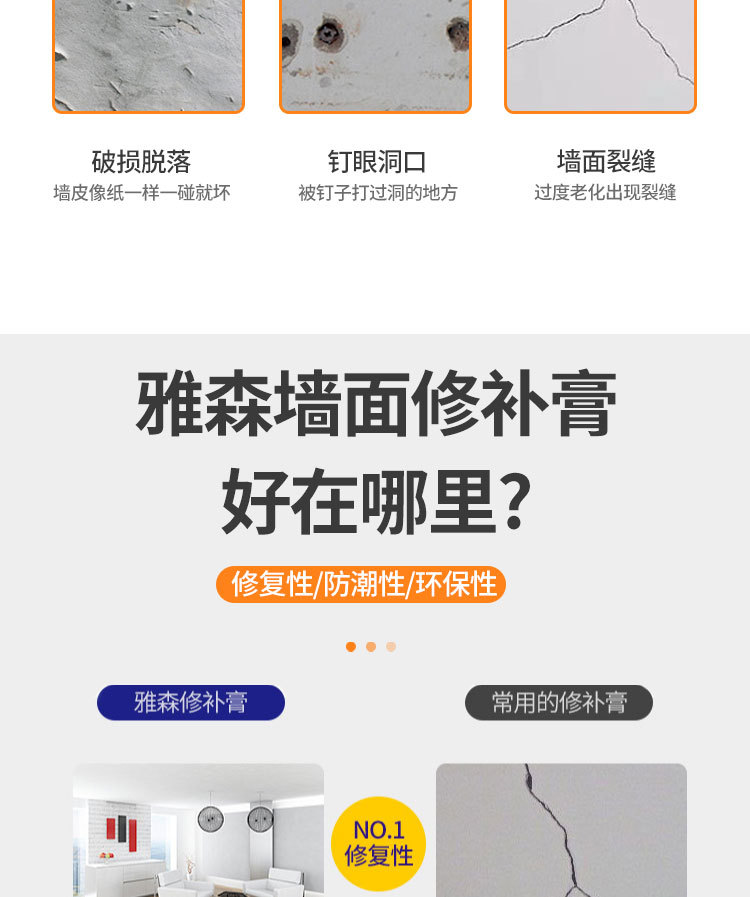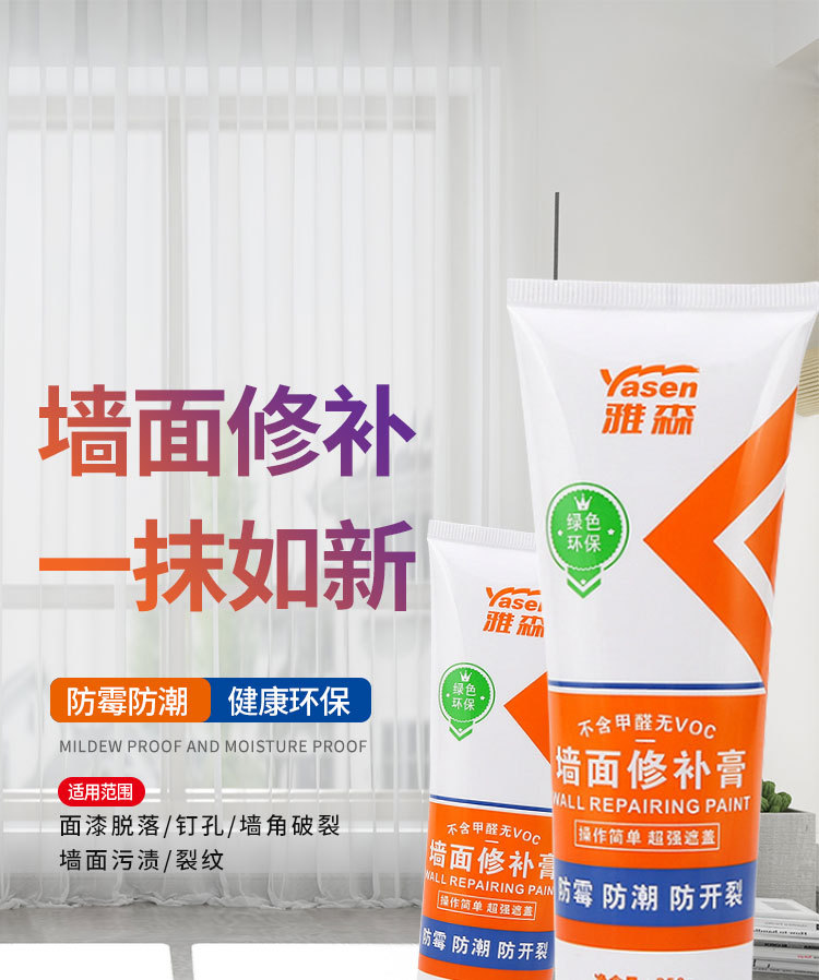 雅森防水补墙膏翻新白色家用腻子墙体防潮防霉乳胶漆墙面修补修复 1kg