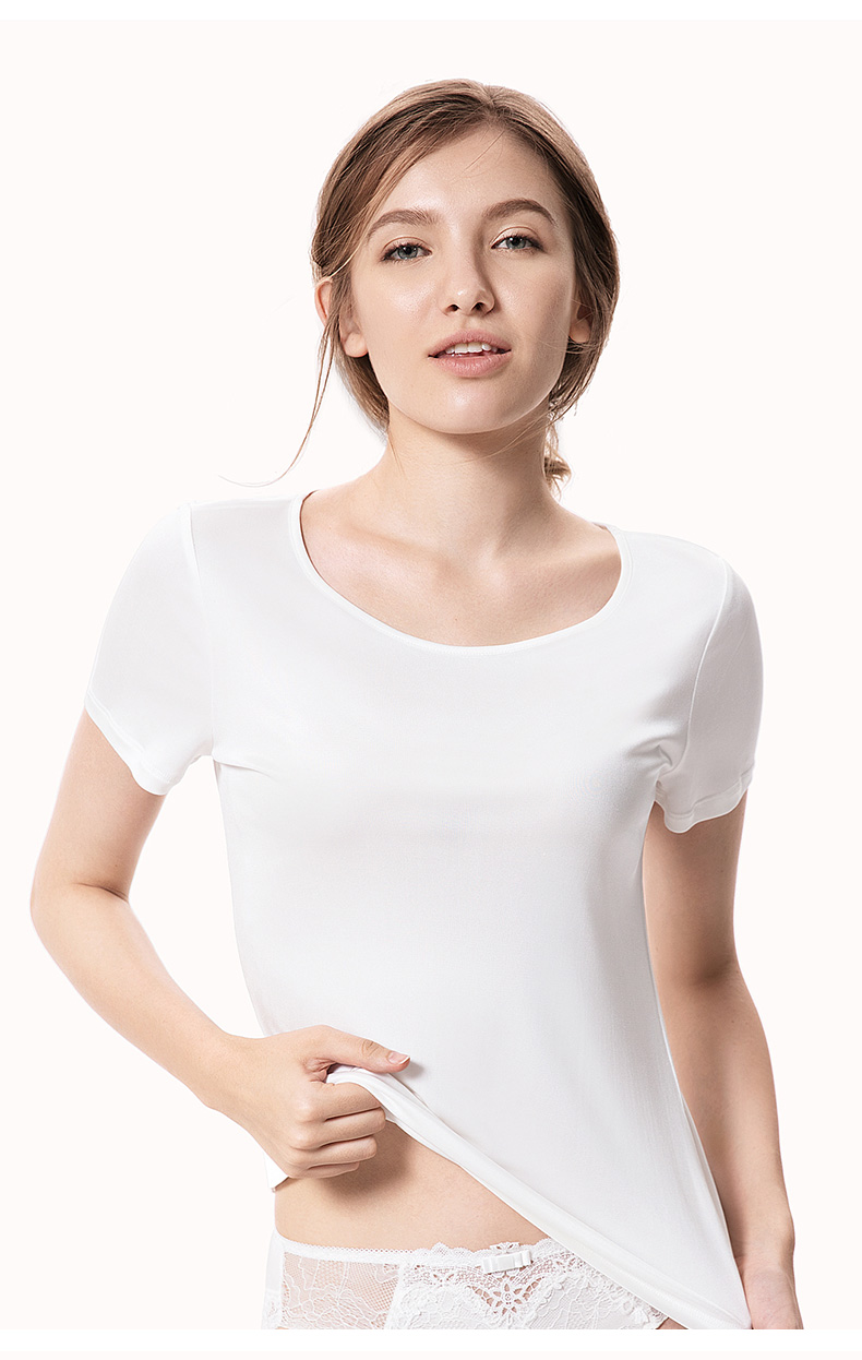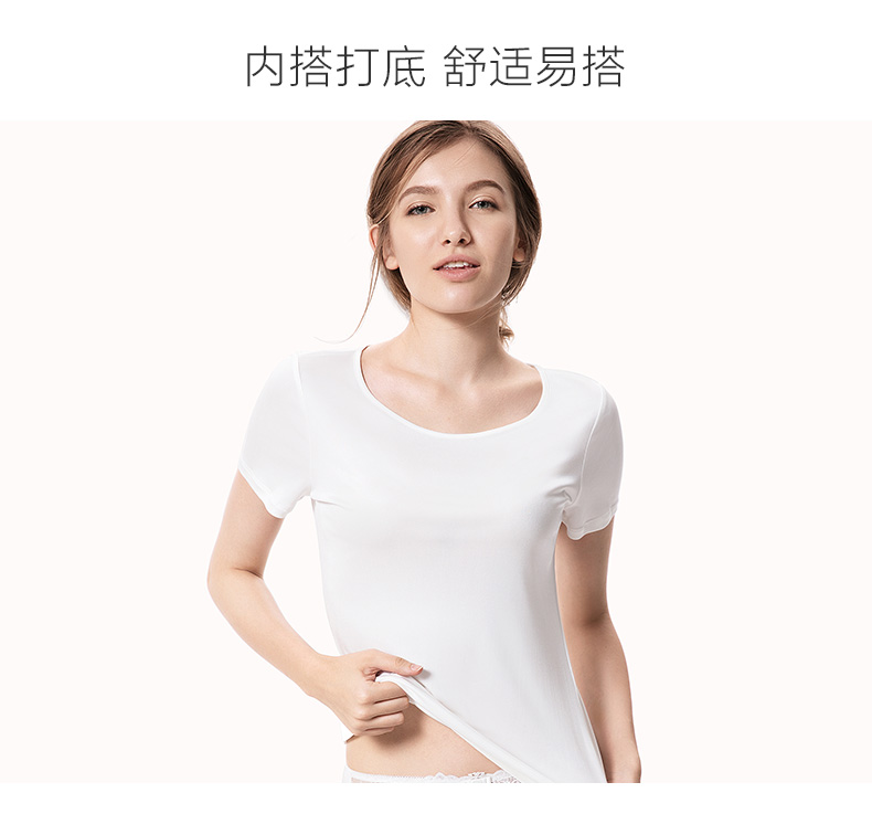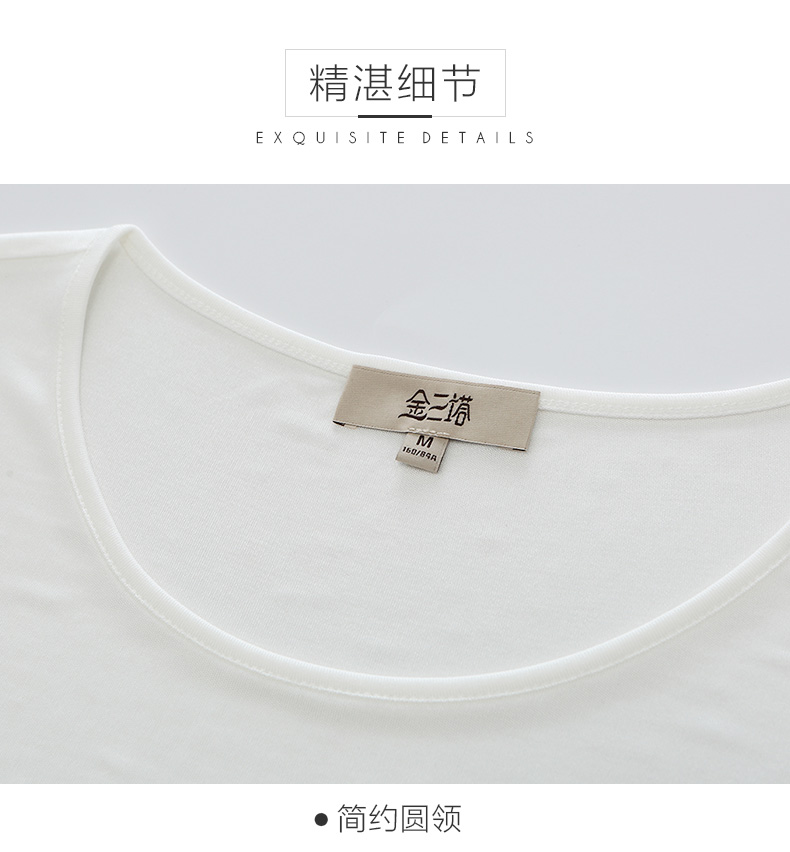 金三塔100%桑蚕丝真丝女士透气舒适T恤百搭圆领纯色打底衫薄 8YZF5B705