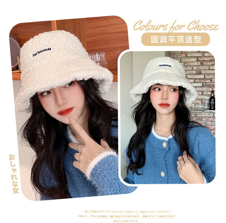 羊羔绒渔夫帽子女秋冬季新款显脸小韩版潮时尚百搭盆帽加厚保暖帽