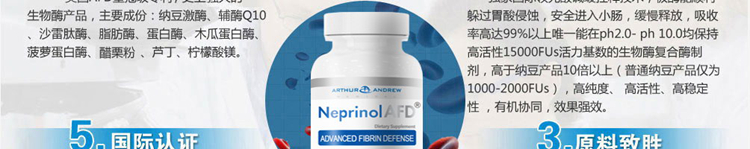 [中文品名]:极酶 Neprinol AFD 高级纤维蛋白 500mg 300粒(Arthur Andrew 制药公司)