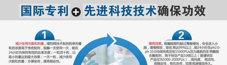 极酶也因此成为世界公认的,能够同步维护血液循环和免疫两大系统健康的革命性健康产品,心脑健康的高端解决方案!四位一体 系统抗血栓!溶解—— 全面清除血管已有的血栓和多种血管垃圾修复—— 加速细胞自我修复,于根源处预防血栓的形成催化—— 提供能量,保证“溶解”和“修复”两大关键环节的顺利进行保护—— 保持和恢复血管正常弹性,防止血管破裂酸碱智能缓控释技术酶的吸收最重要的不是分子的大小,而在于在人体的不同酸碱环境下的平稳释放能力和活性衰减的速度。