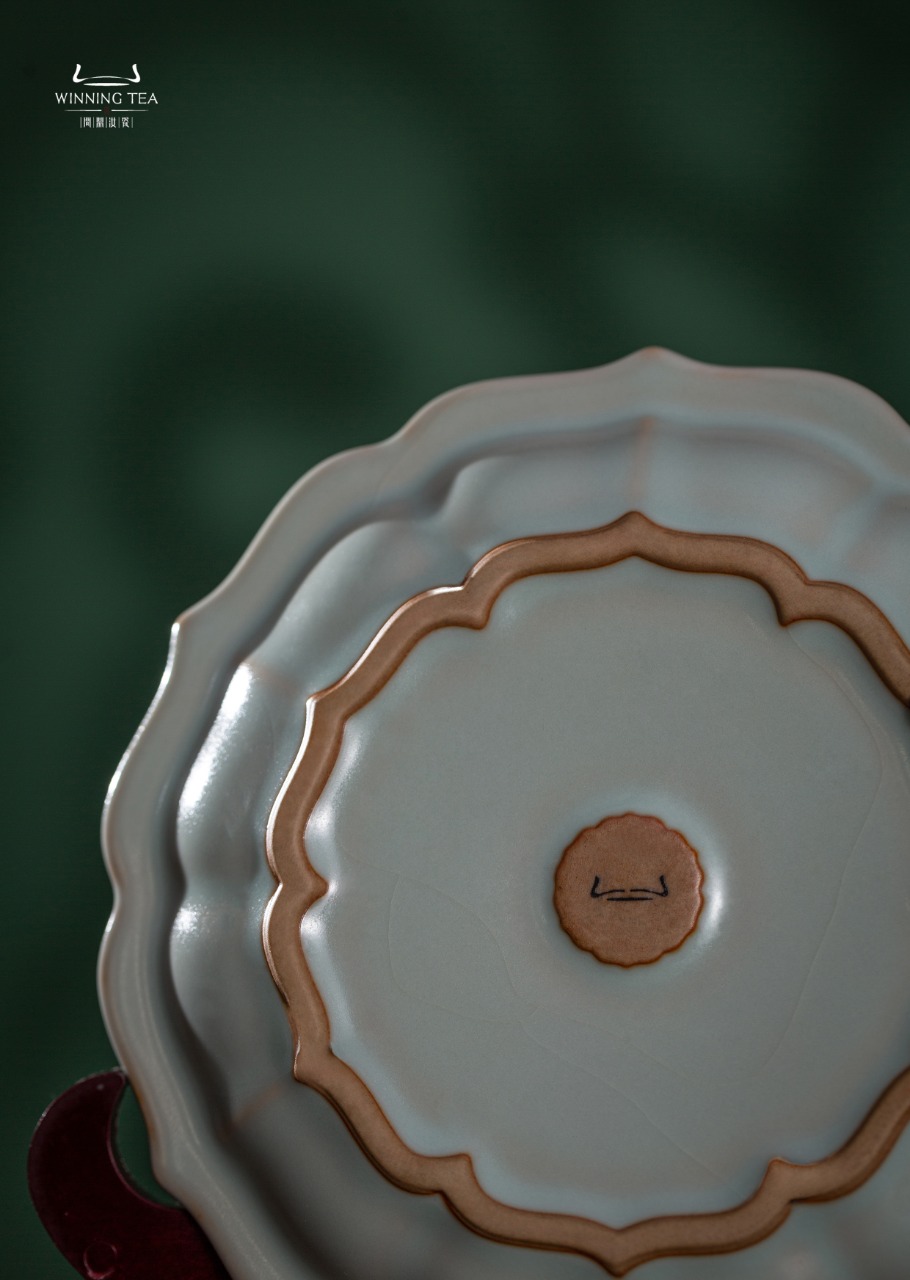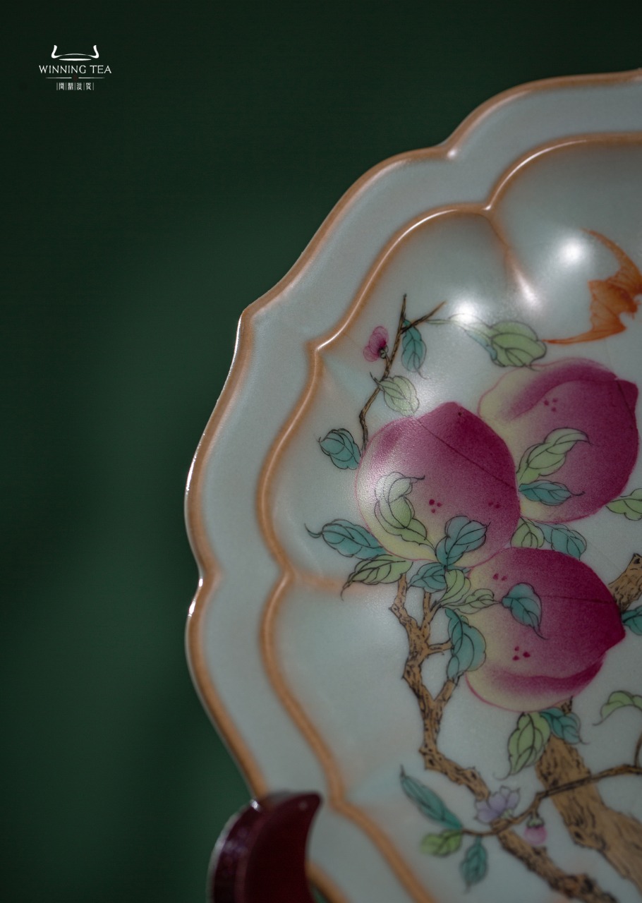 问鼎汝瓷鼎峰系列天青老款宝相壶承(绘画五桃)(缺货)