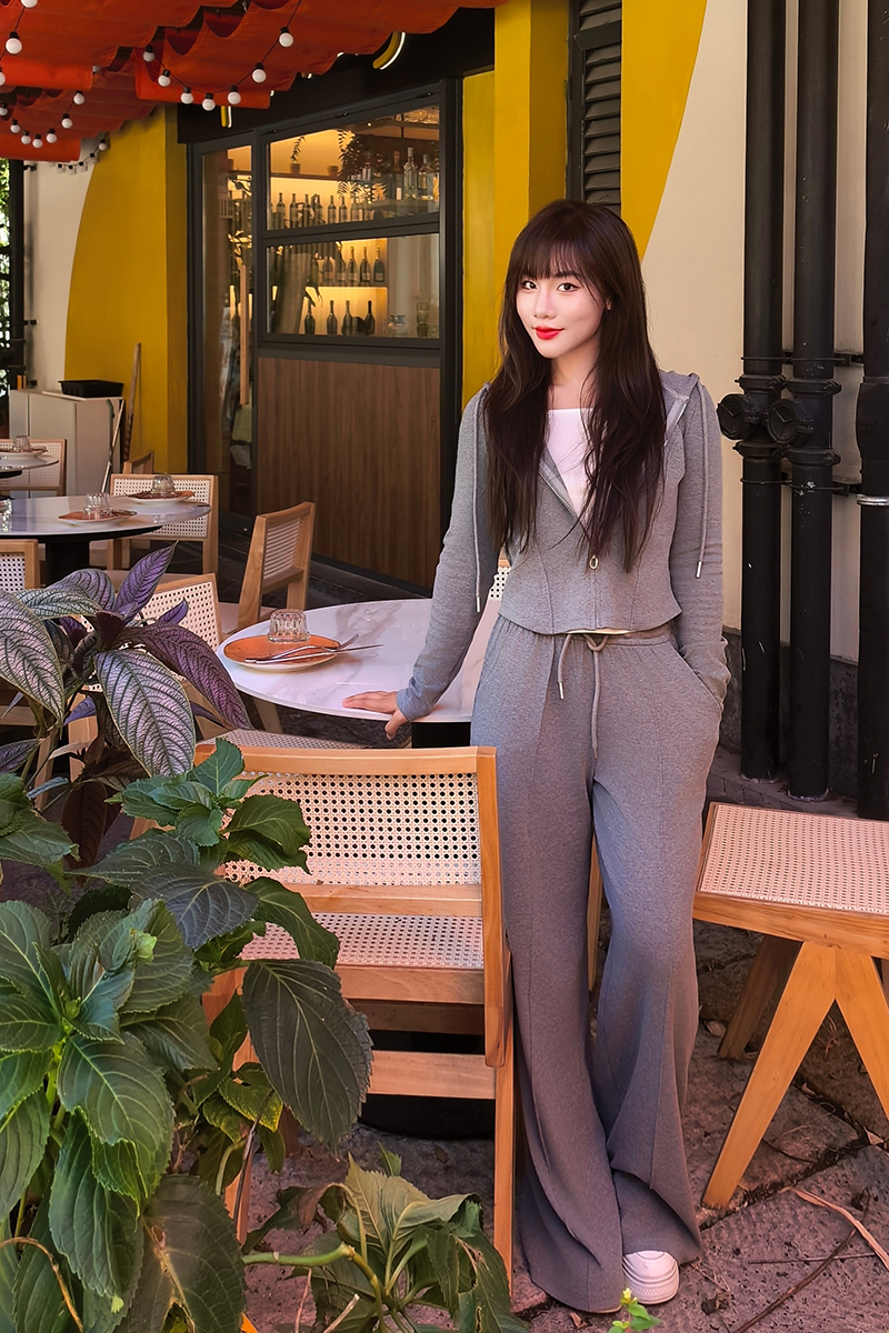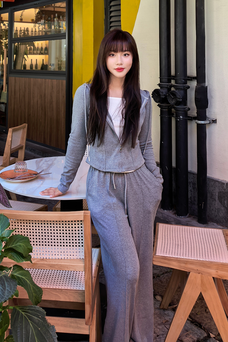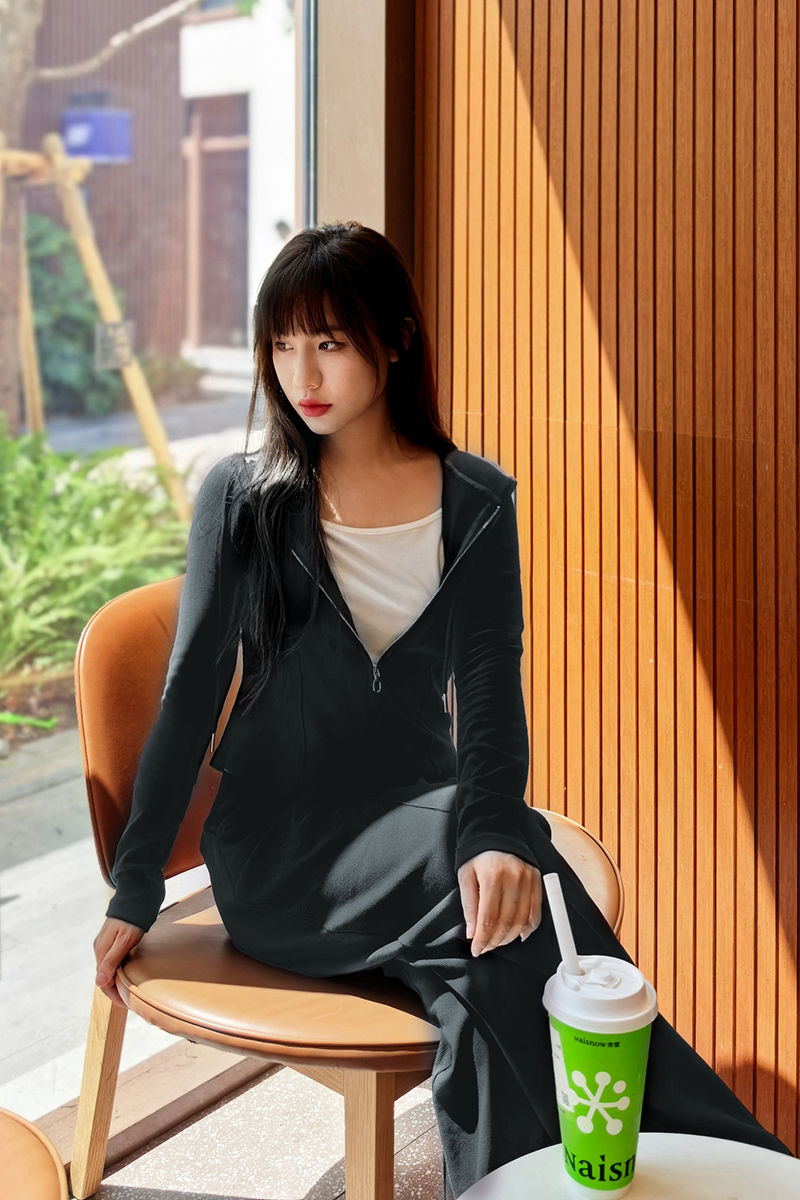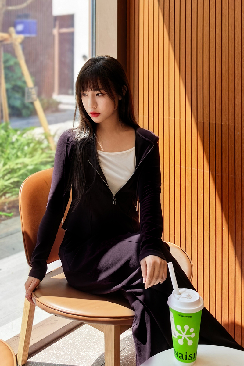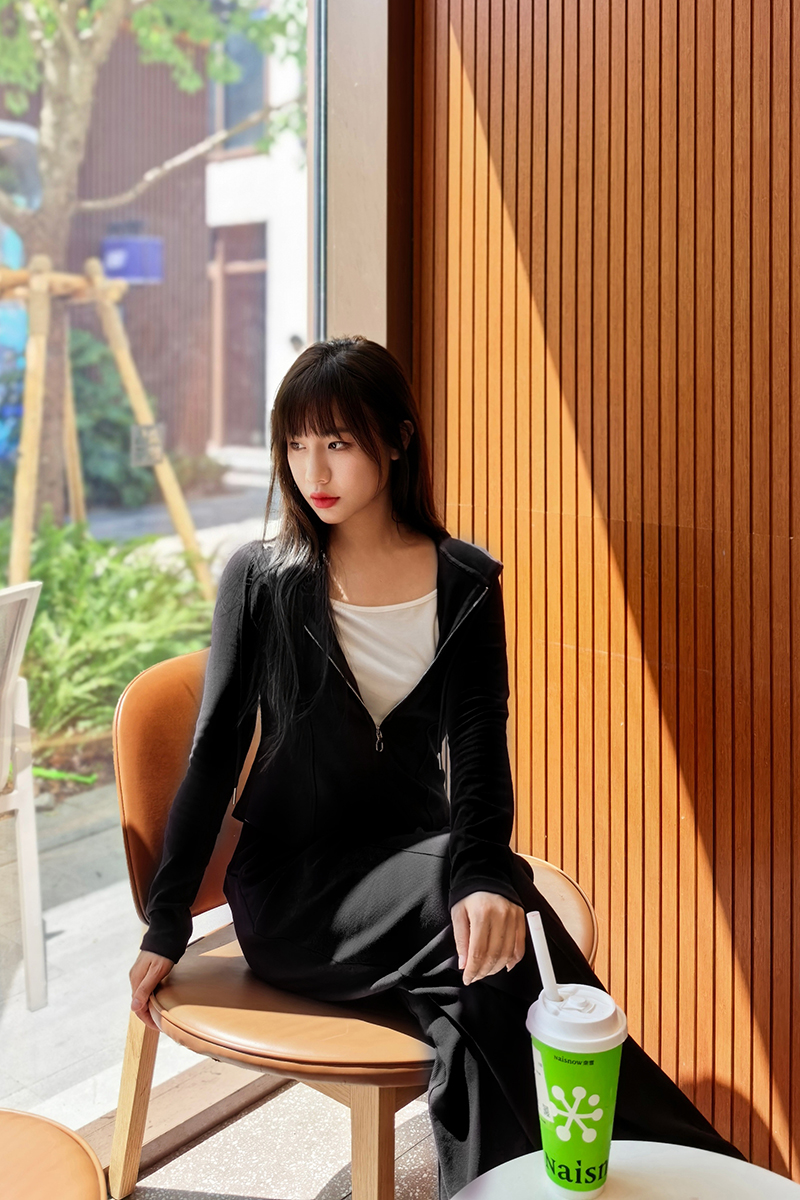 上衣立体捏骨,柔软有股,巧妙藏肉
