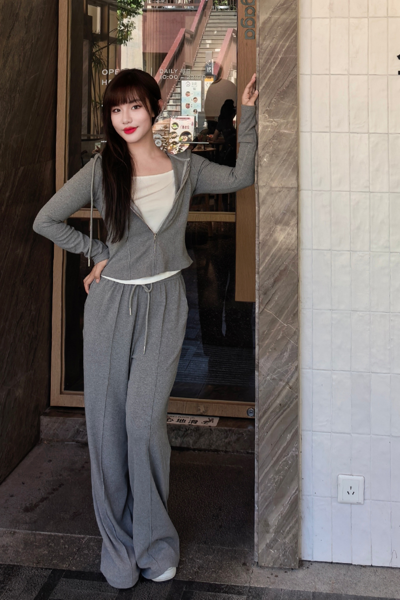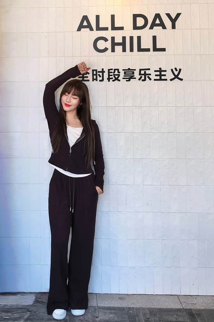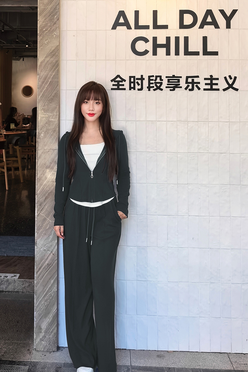 外套+直筒裤,版型合身,不松不紧