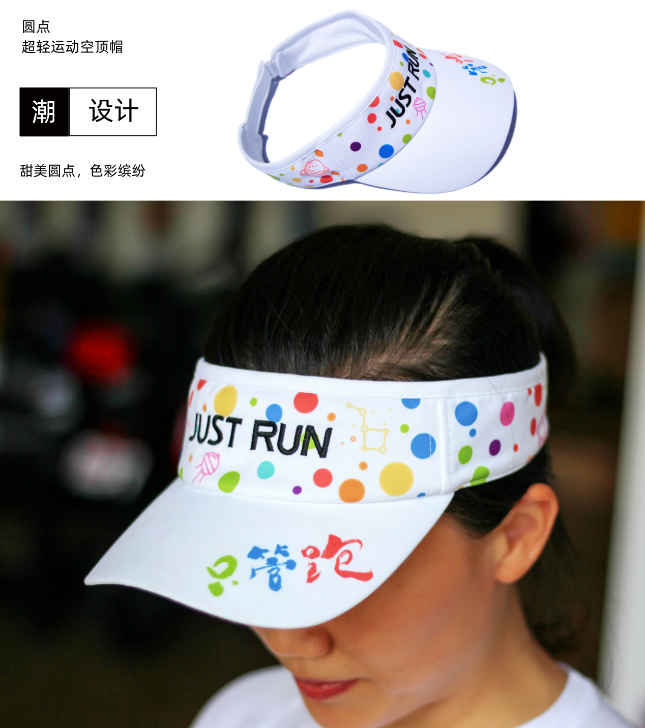 圆点超轻防晒透气吸汗排汗运动马拉松越野跑步空顶帽