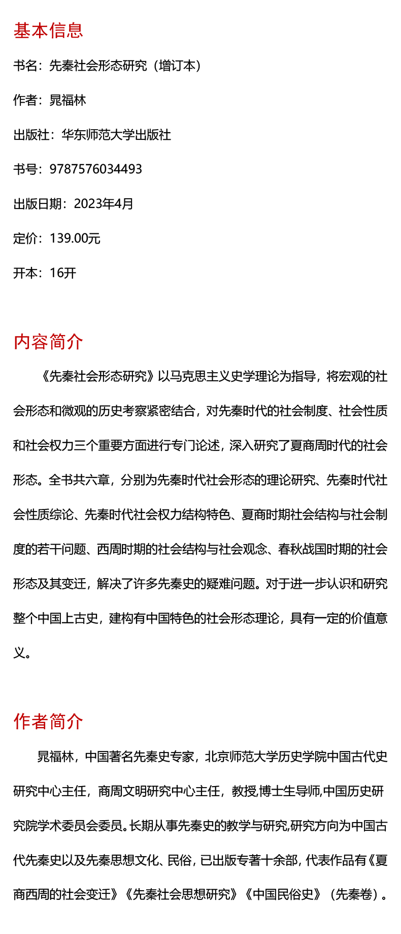 先秦社会形态研究 增订本 历史与社会学文库 晁福林