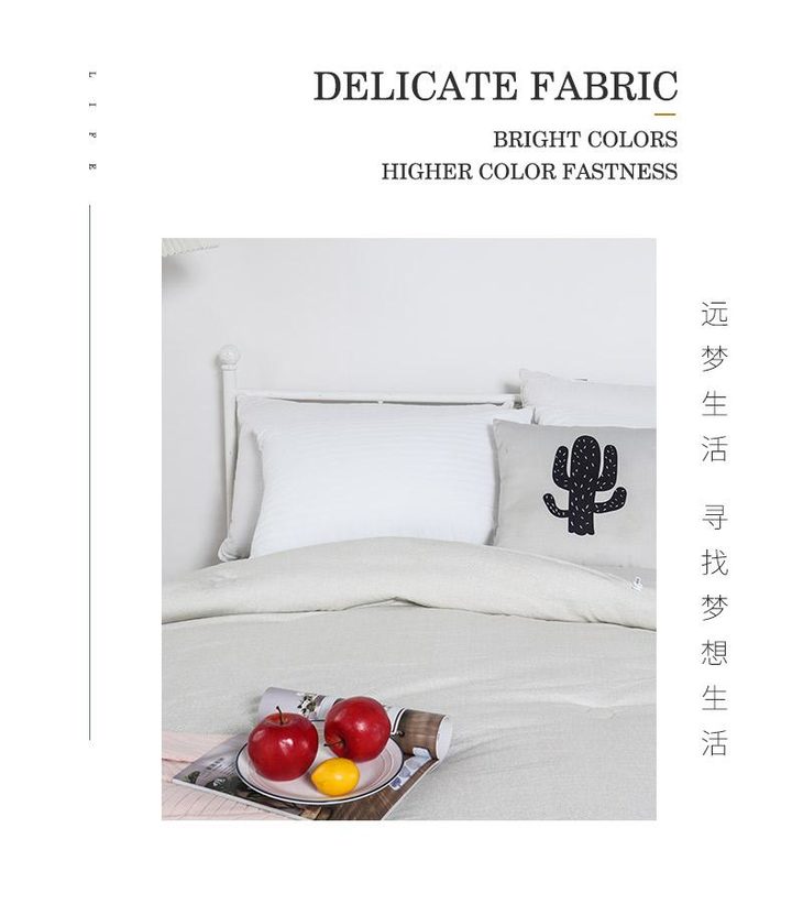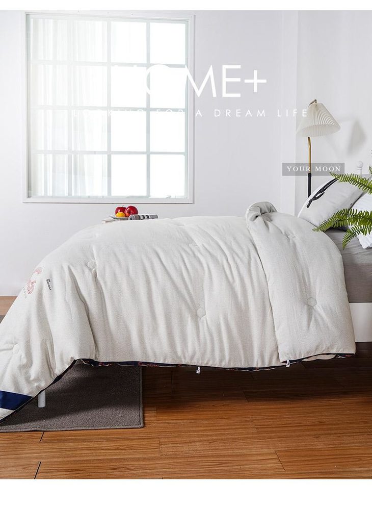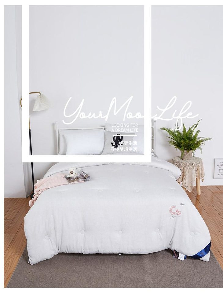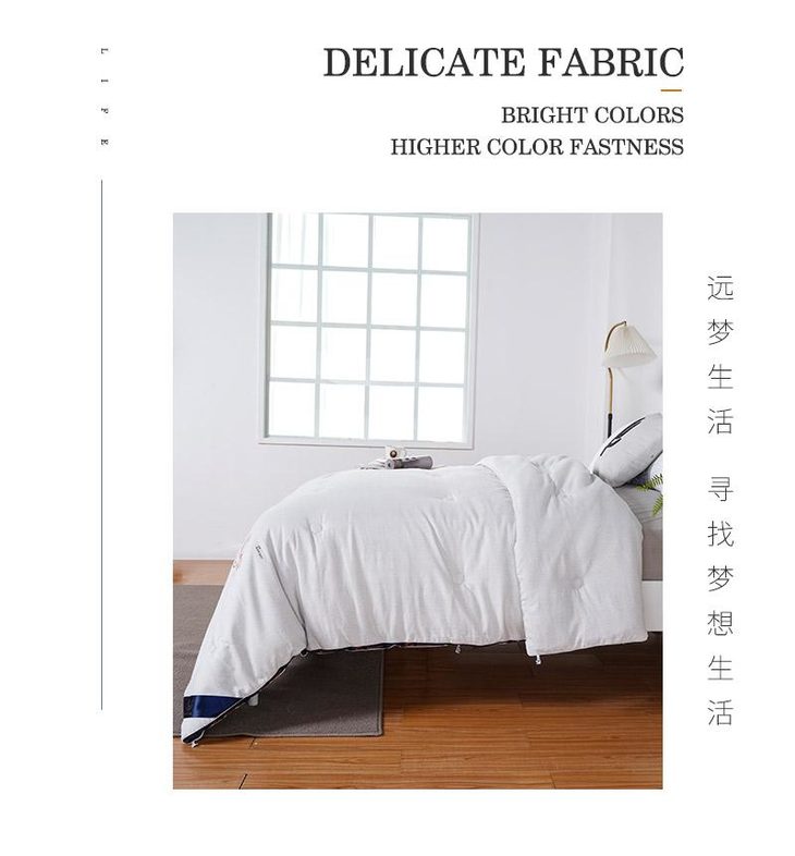a.【恒温常适】远梦研发团队采用美国国际3M公司的3M Scotchgrrd™助剂,与国际服装运动品牌同一吸湿技术处理,面料具有良好的导湿性,能将人体皮肤湿气快速而自然的排出,平衡被窝湿度。有效传导湿气与人体热量,留住舒适的保暖温度。