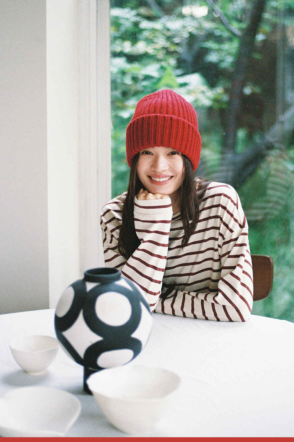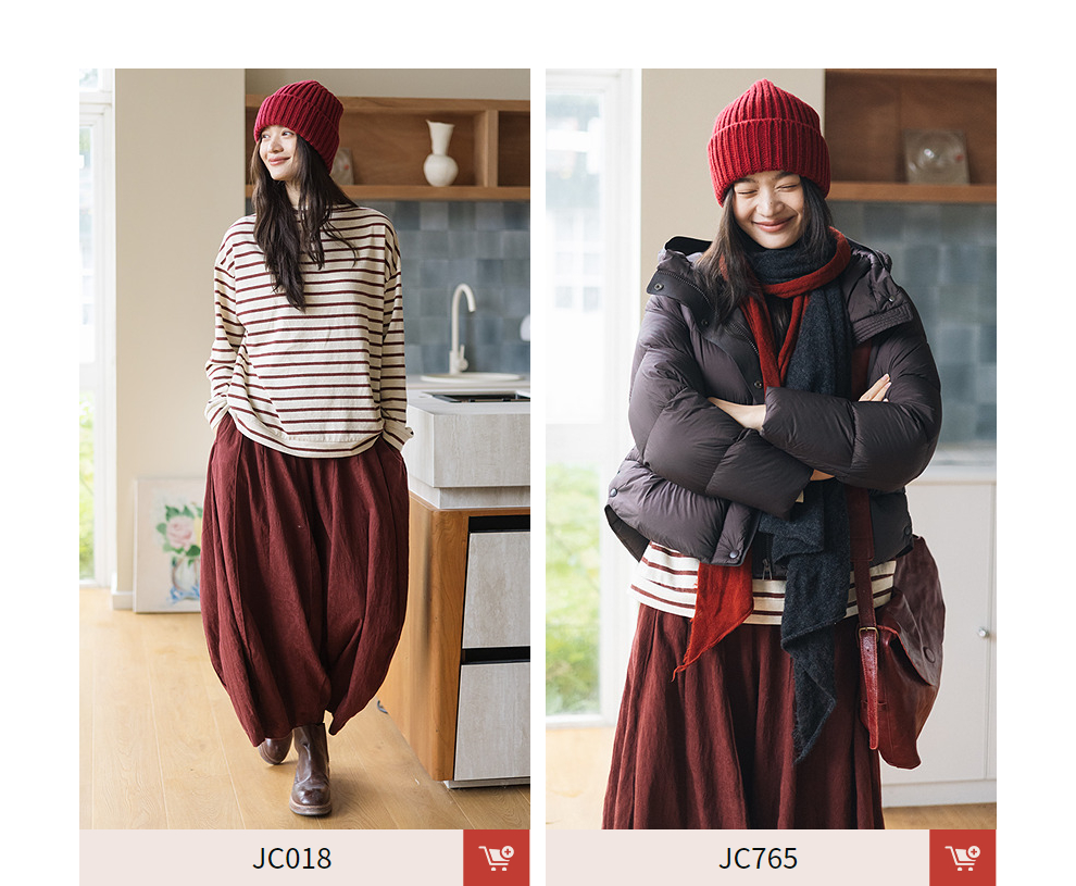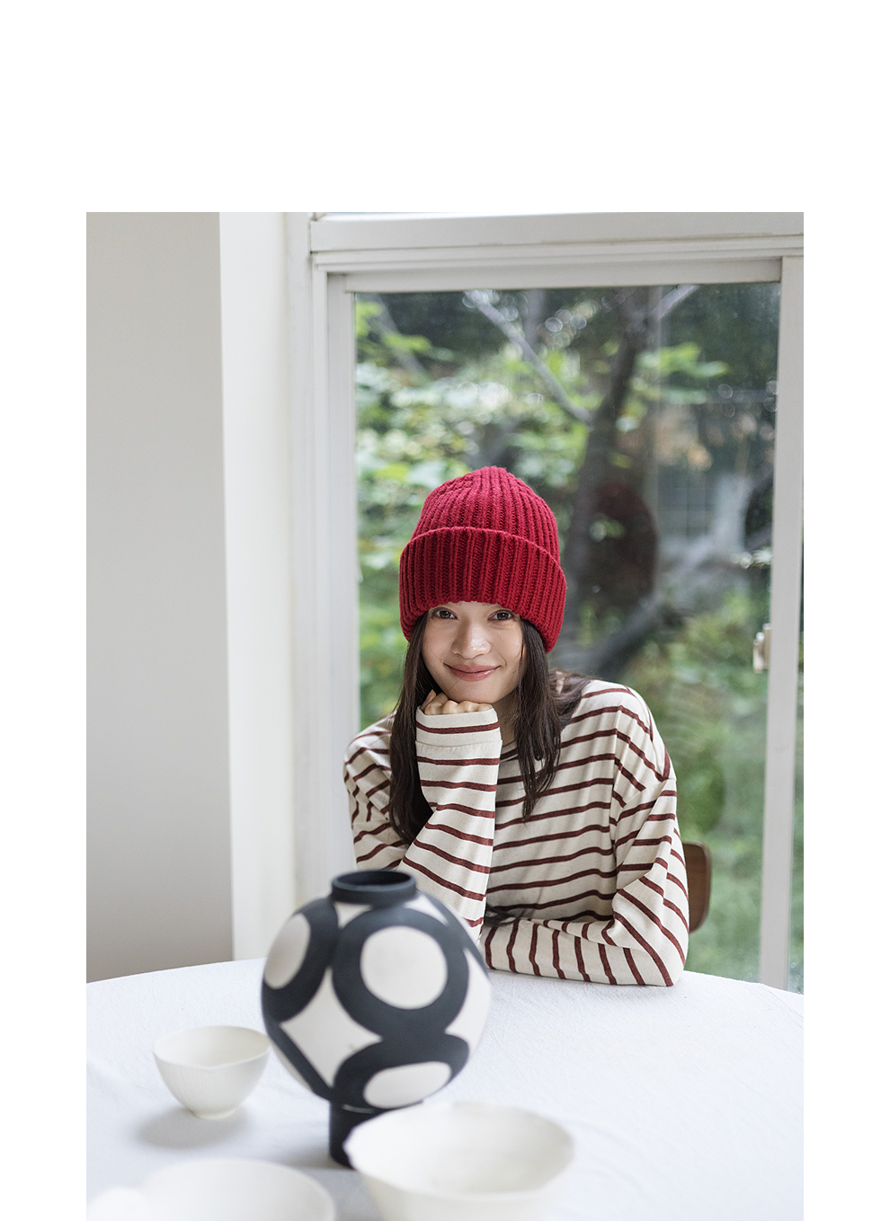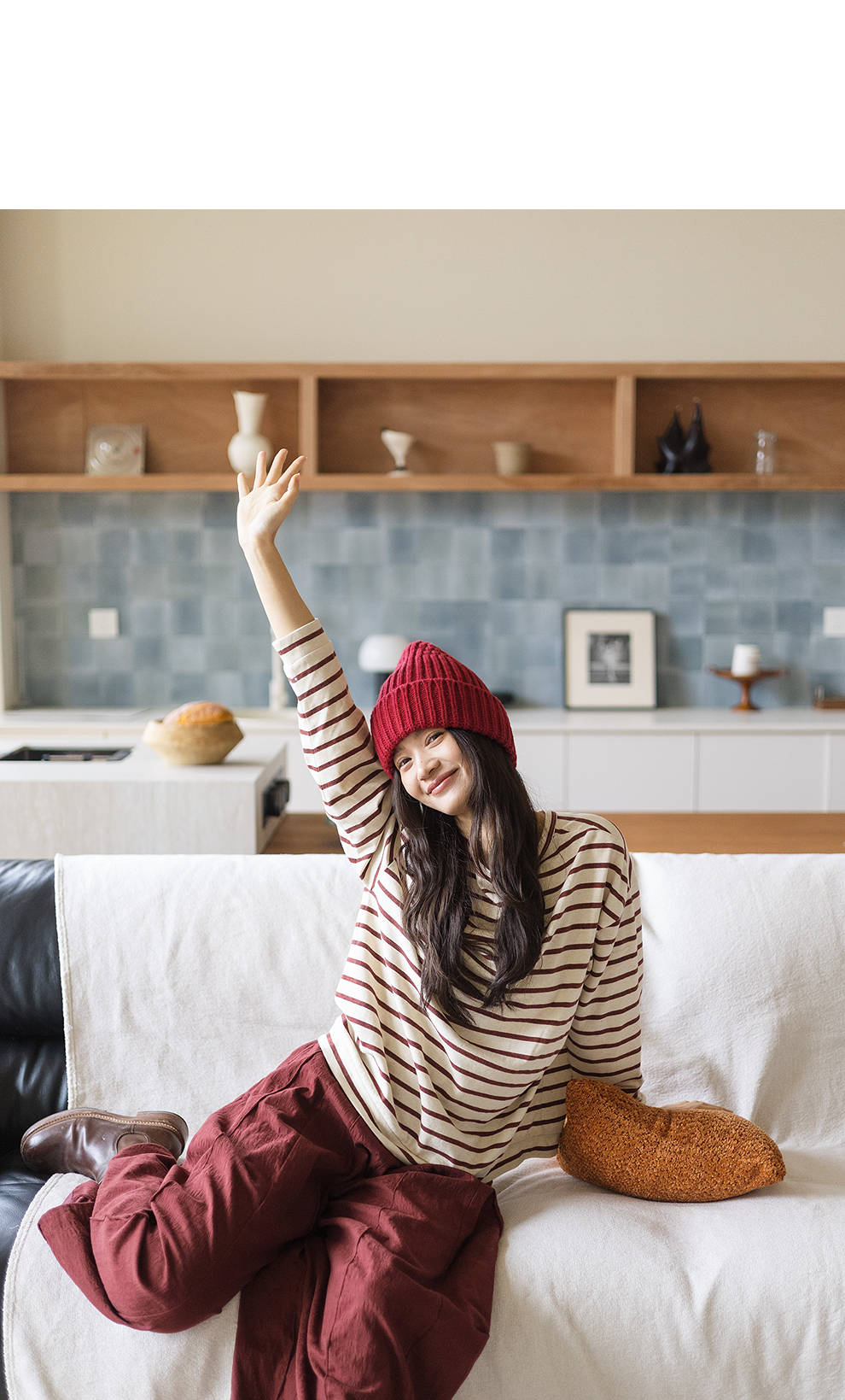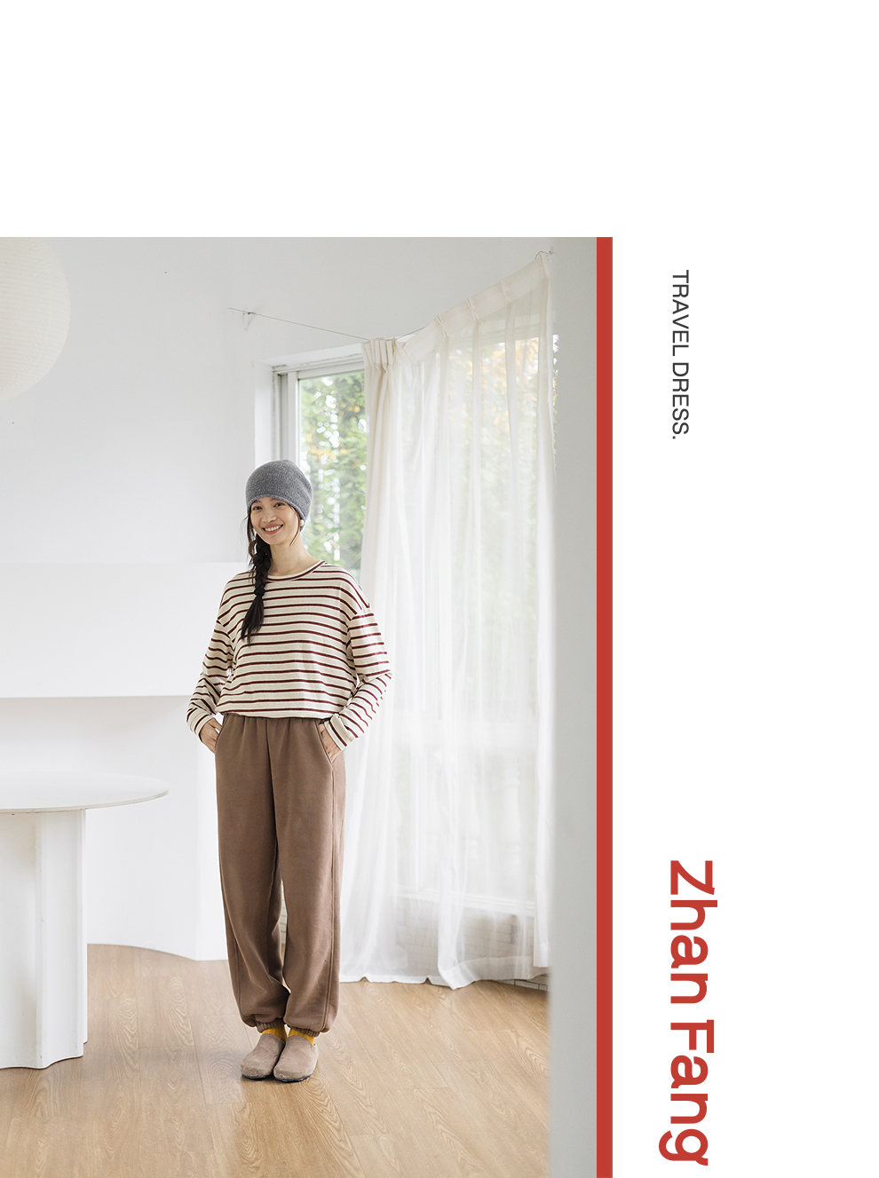 绽放816朵/羊毛汉麻棉色纺纱圆领落肩条纹长袖T恤女冬打底衫内搭