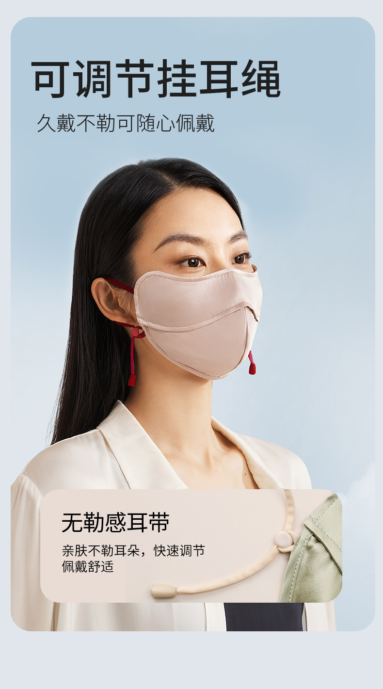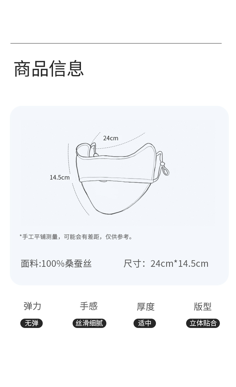 金三塔真丝口罩100%桑蚕丝凉感丝滑舒适透气面罩口罩男女 JJ036/JJ038