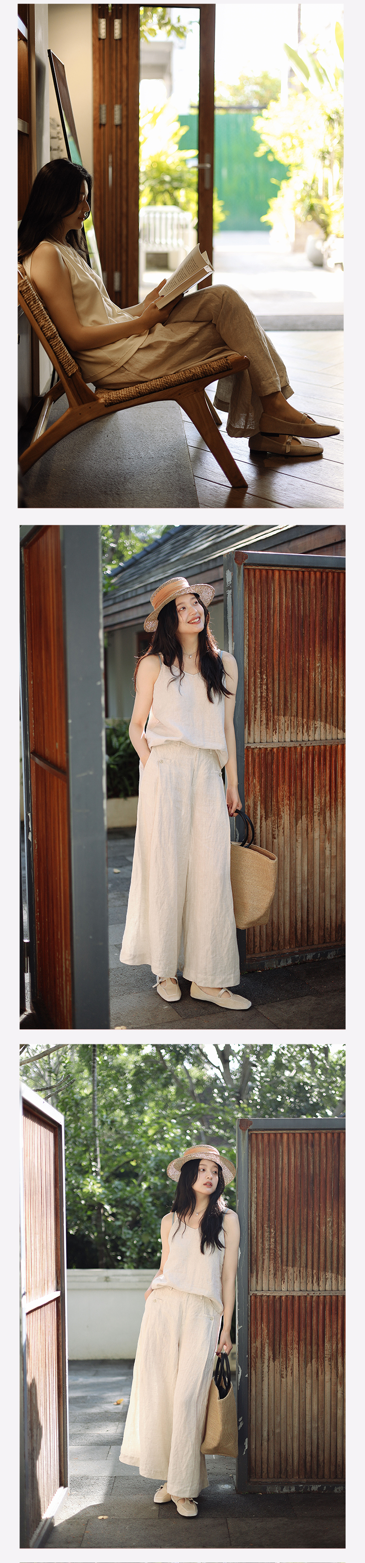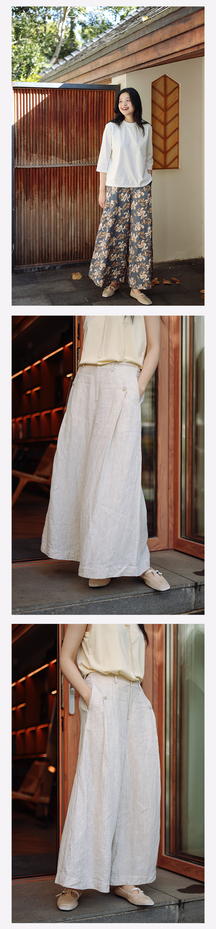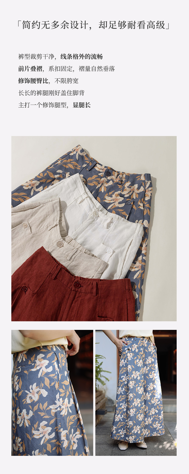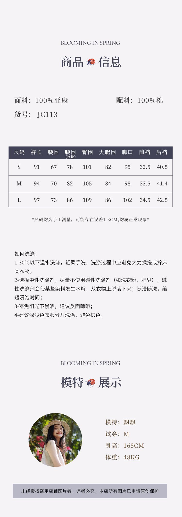 绽放113朵/100%干洗亚麻自然肌理筋骨感宽松显瘦显腿长百搭阔腿裤