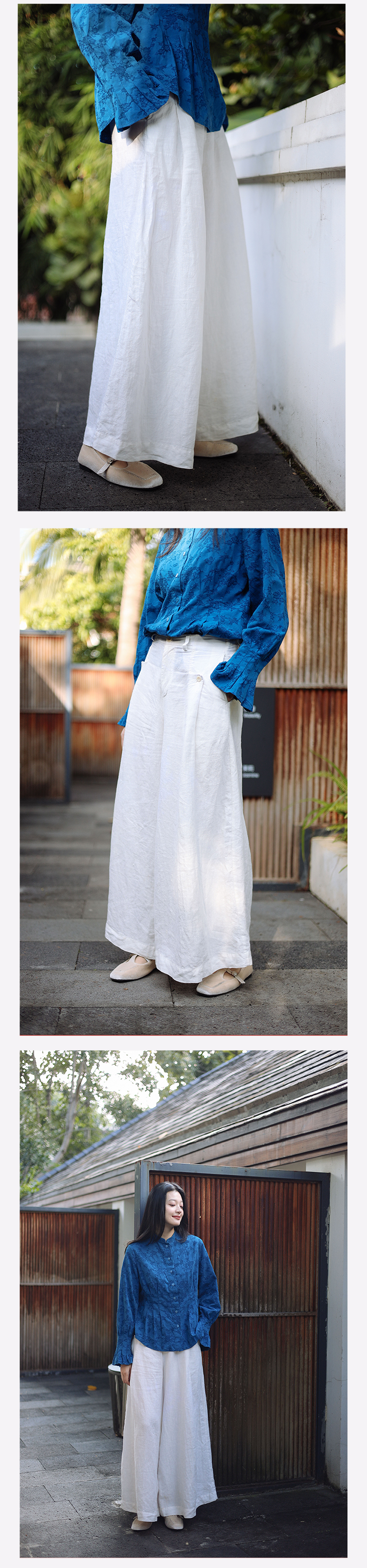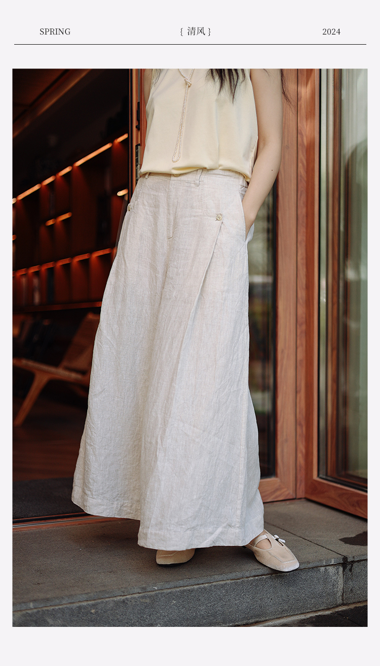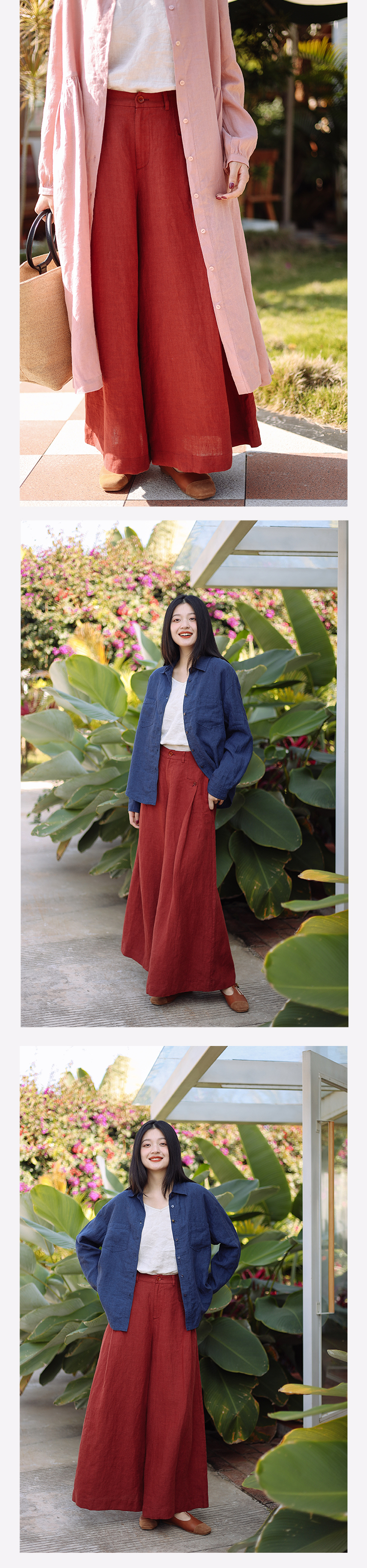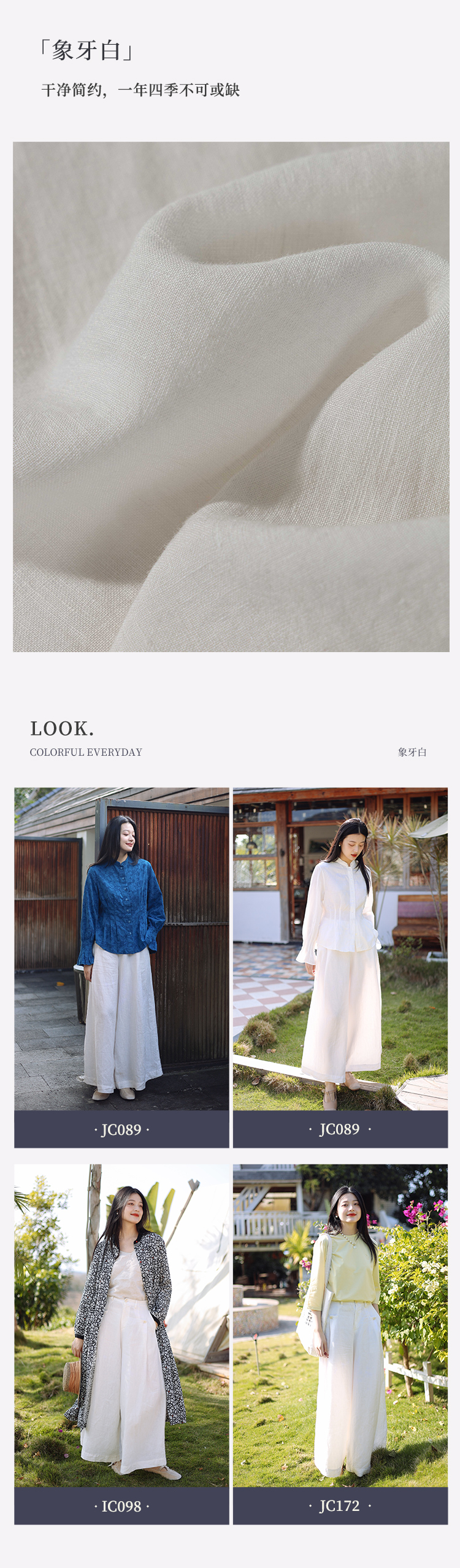 绽放113朵/100%干洗亚麻自然肌理筋骨感宽松显瘦显腿长百搭阔腿裤