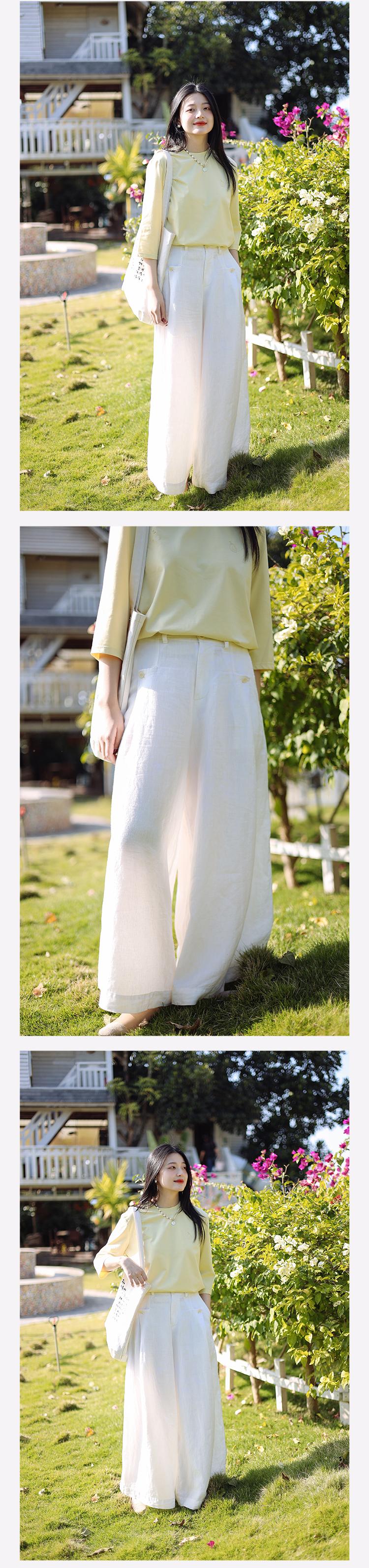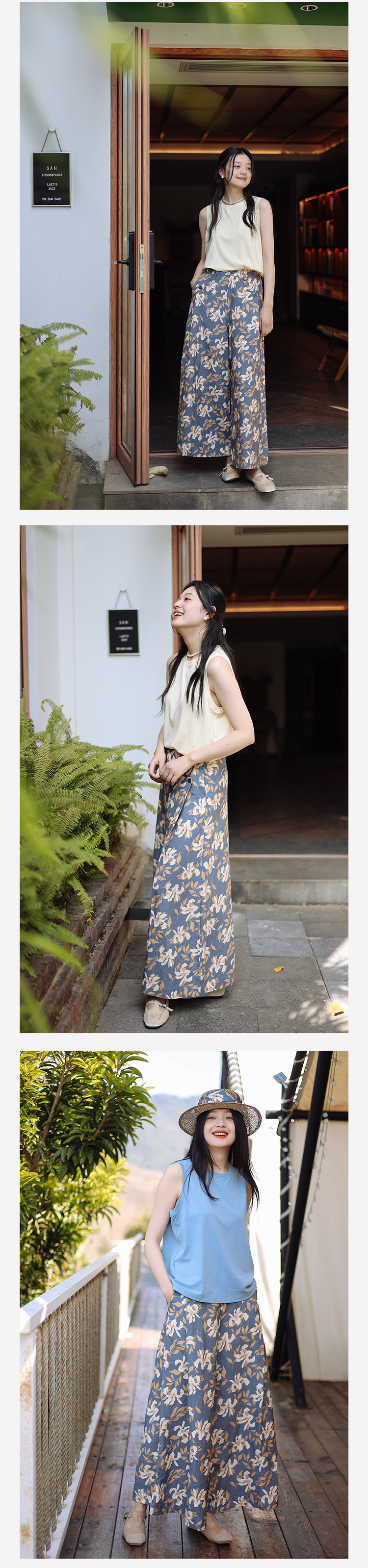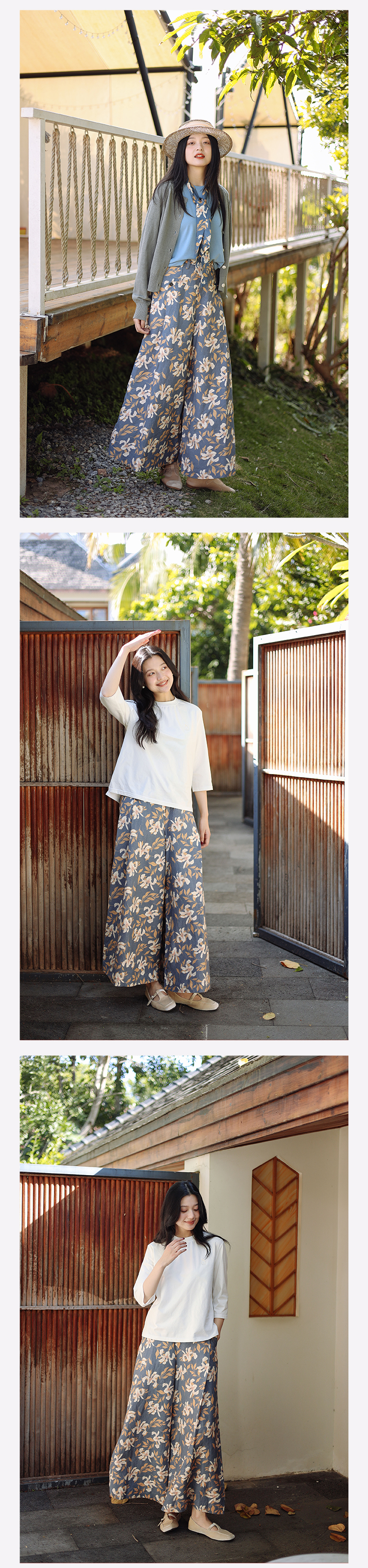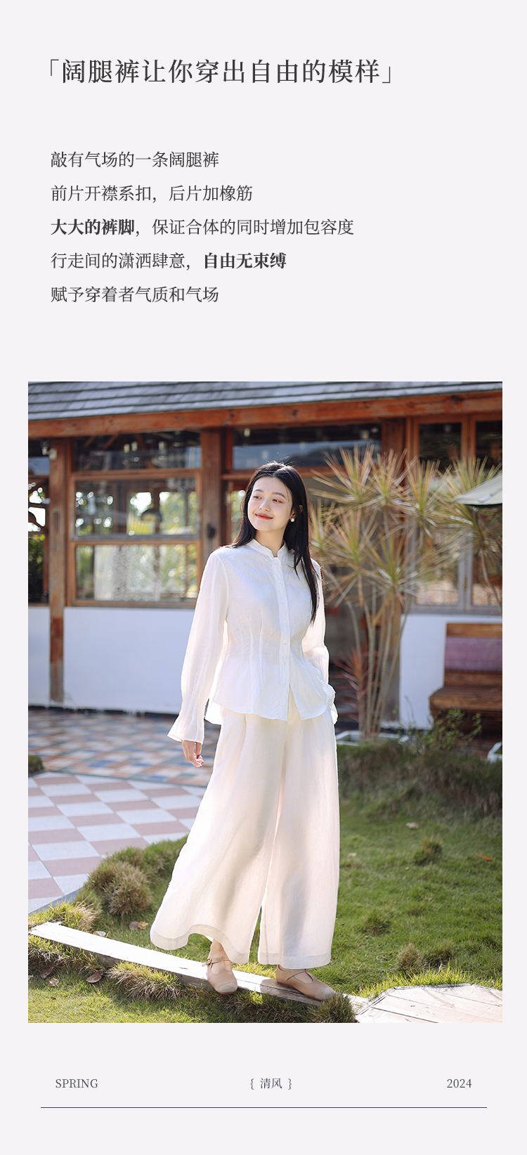 绽放113朵/100%干洗亚麻自然肌理筋骨感宽松显瘦显腿长百搭阔腿裤