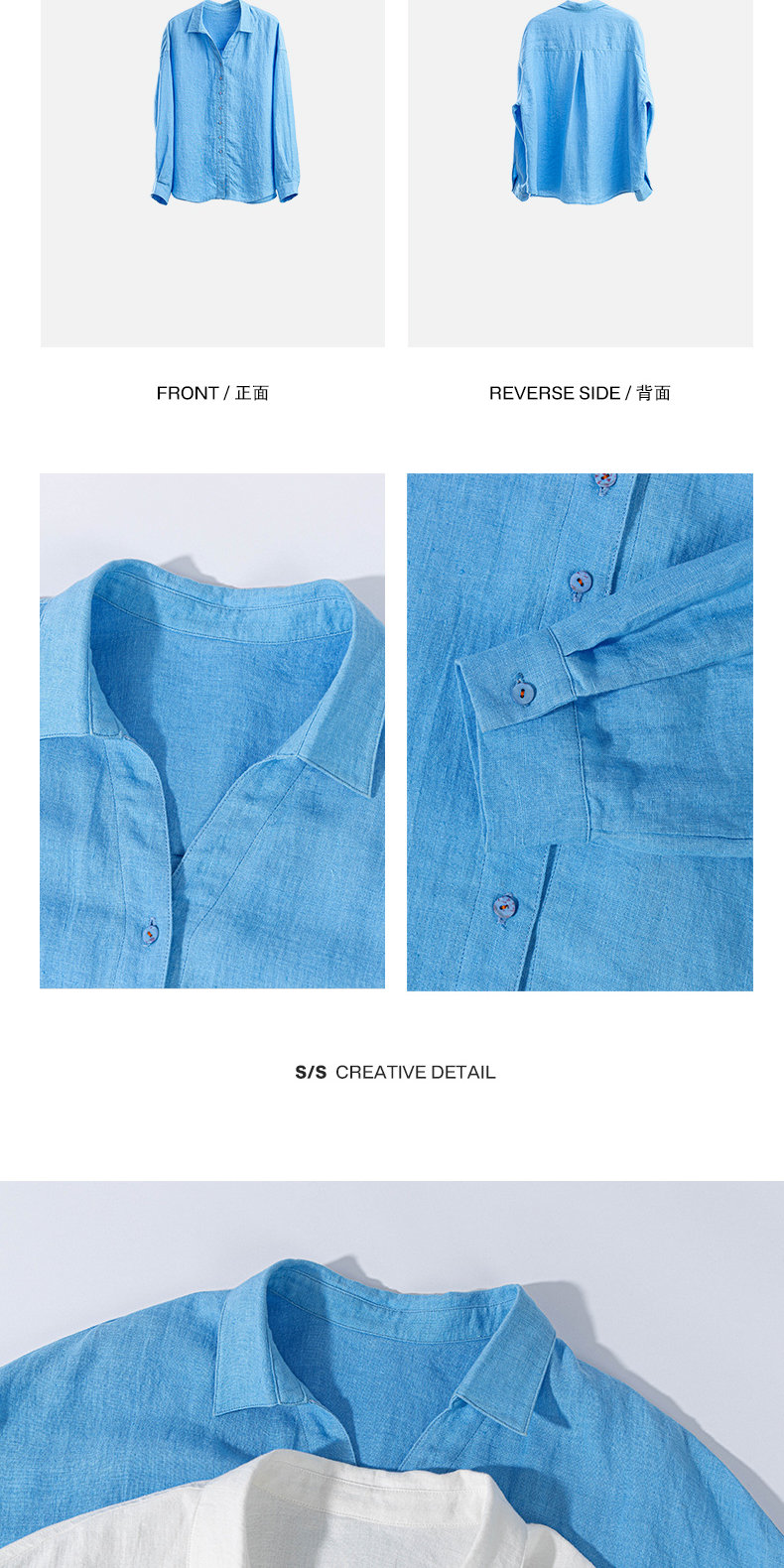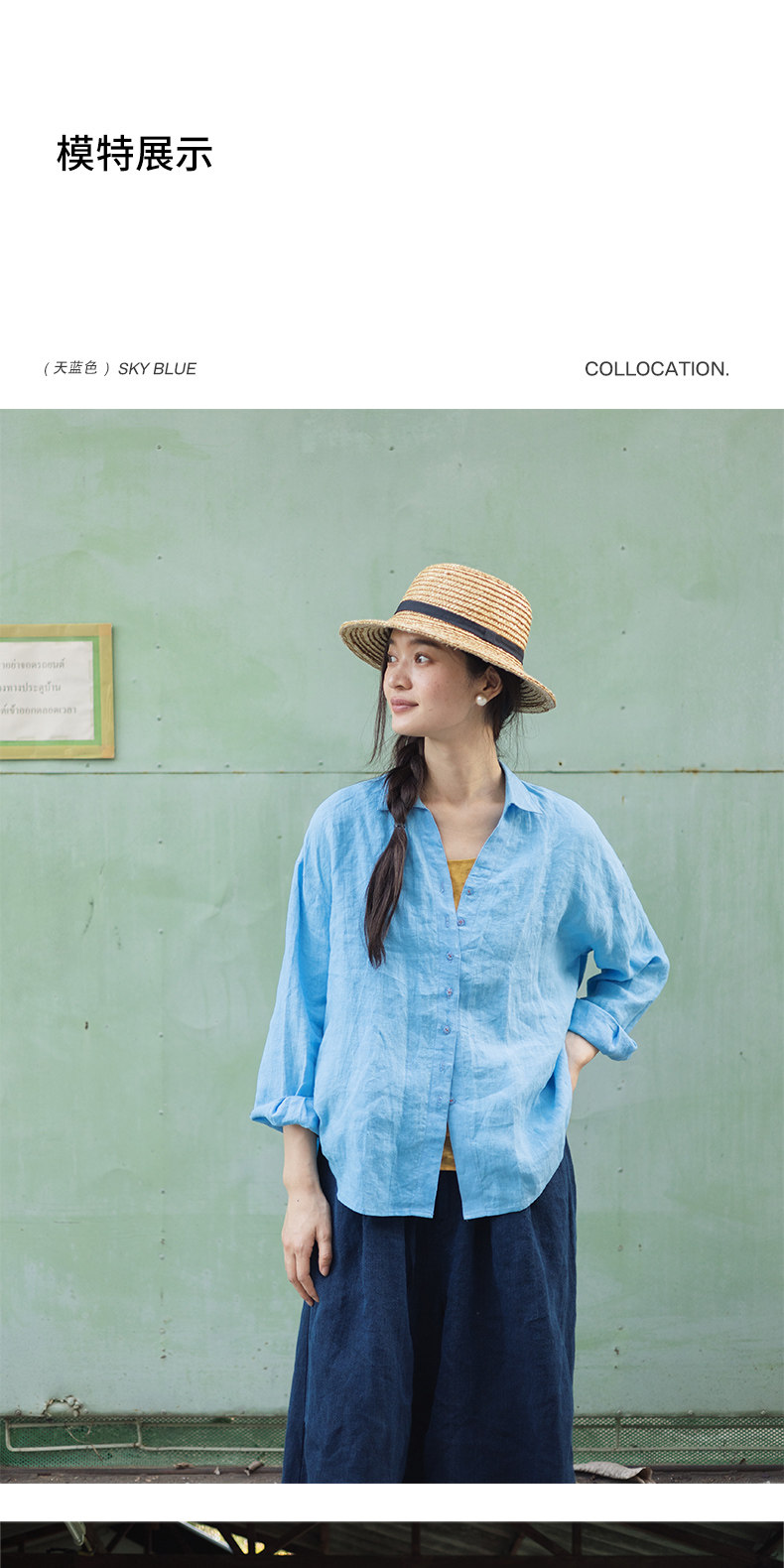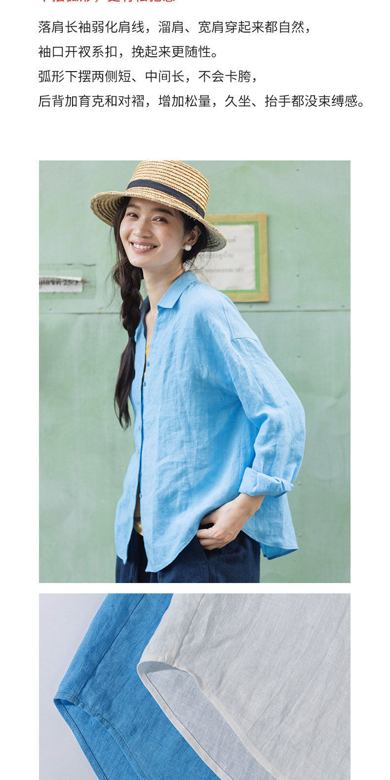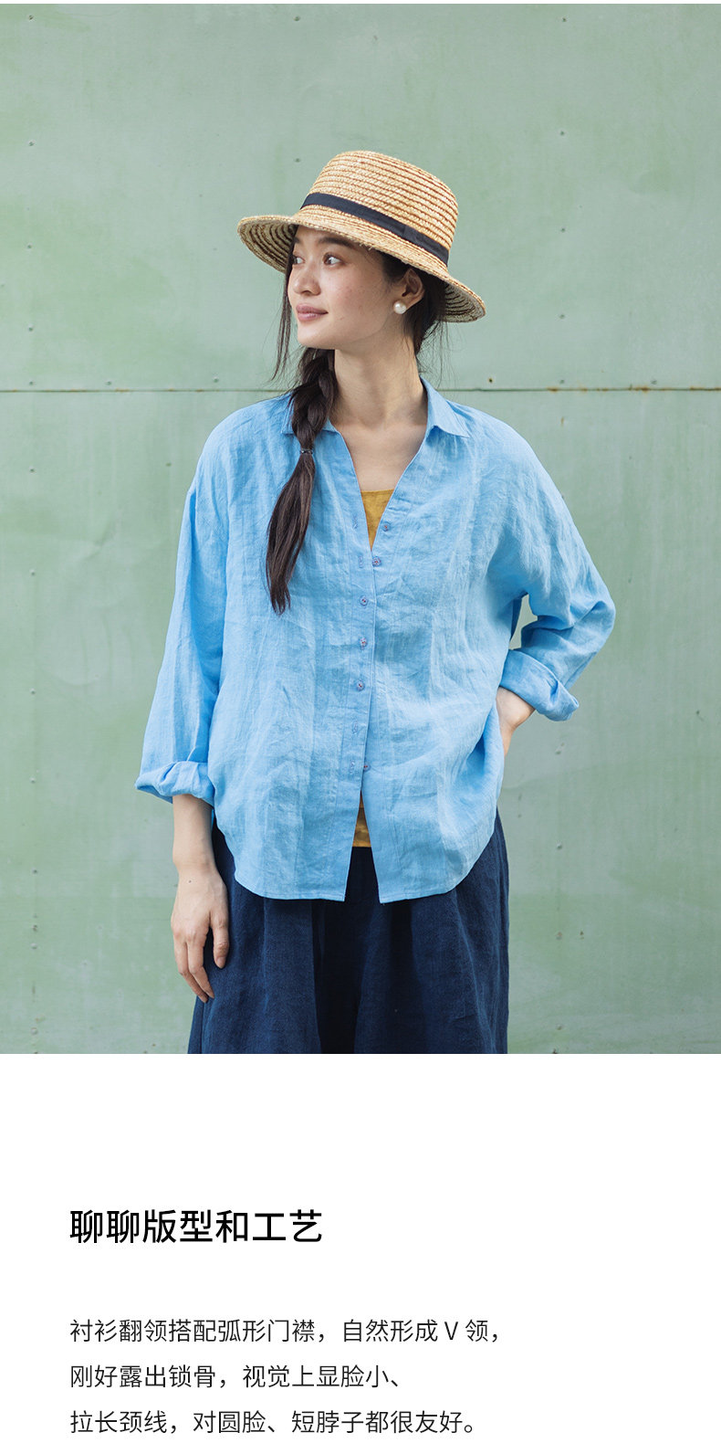 特绽放女装118朵/大女主·砂洗汉麻翻领系扣落肩长袖衬衫女春新款