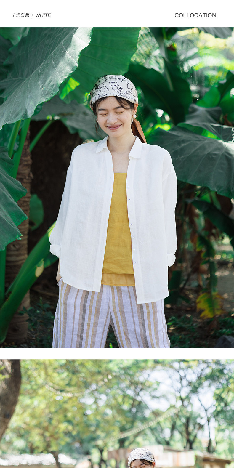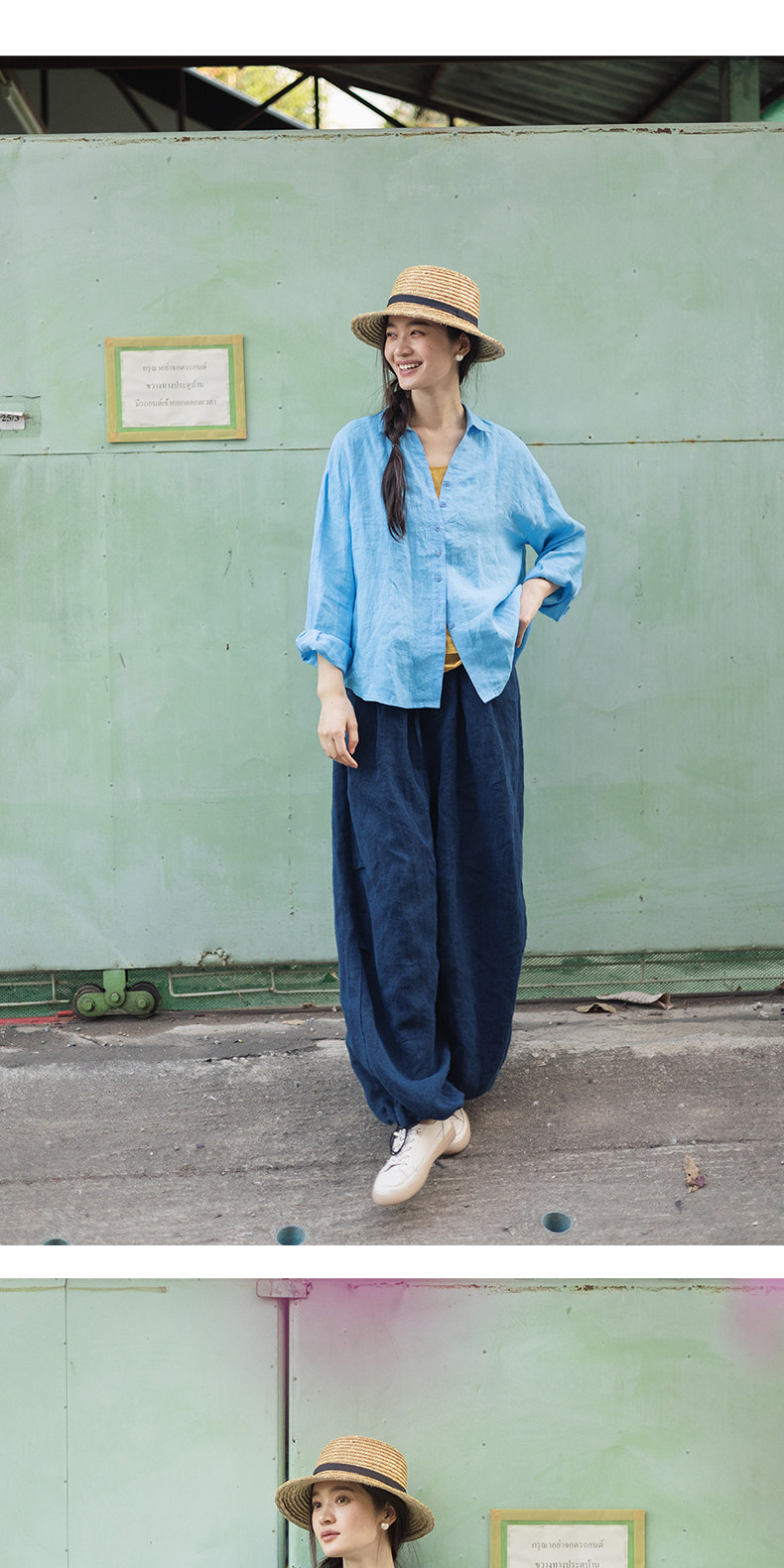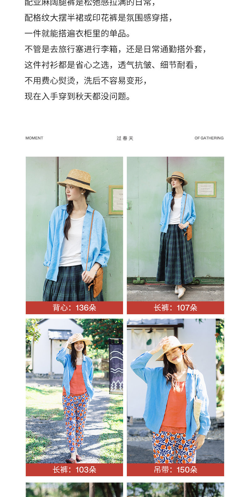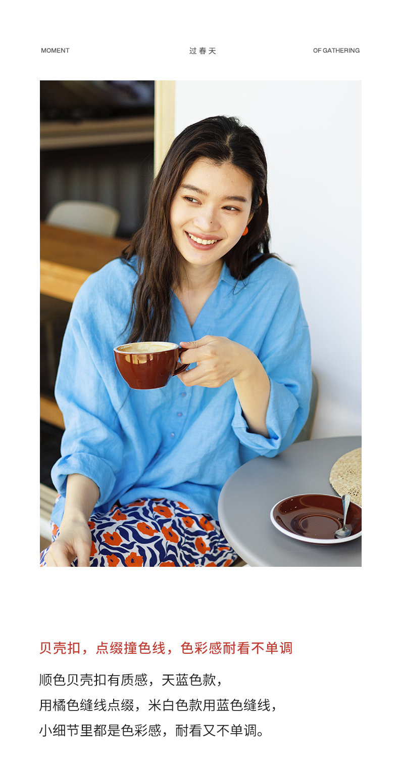 特绽放女装118朵/大女主·砂洗汉麻翻领系扣落肩长袖衬衫女春新款