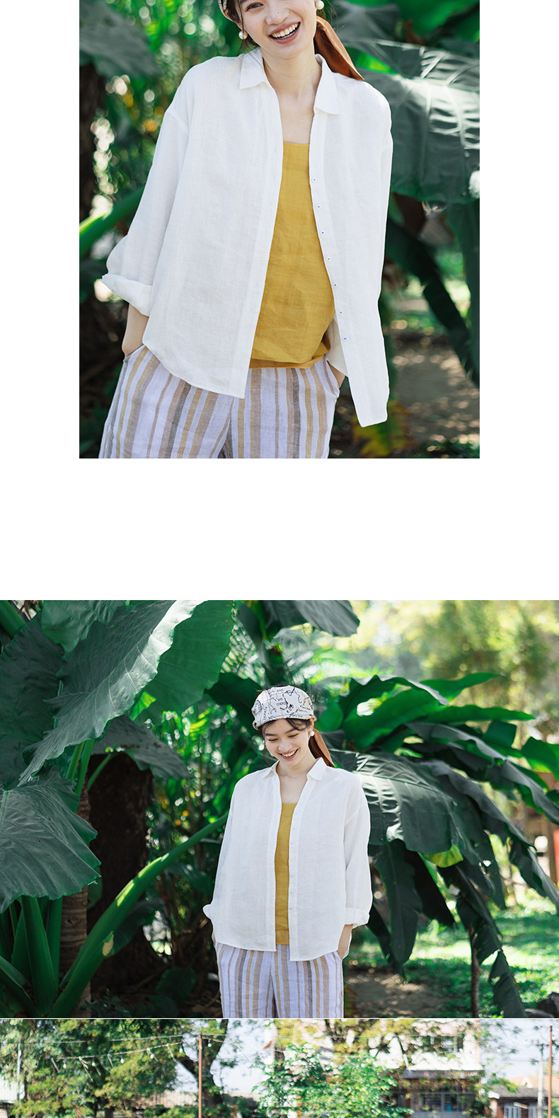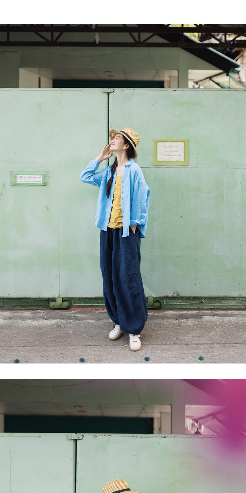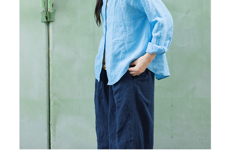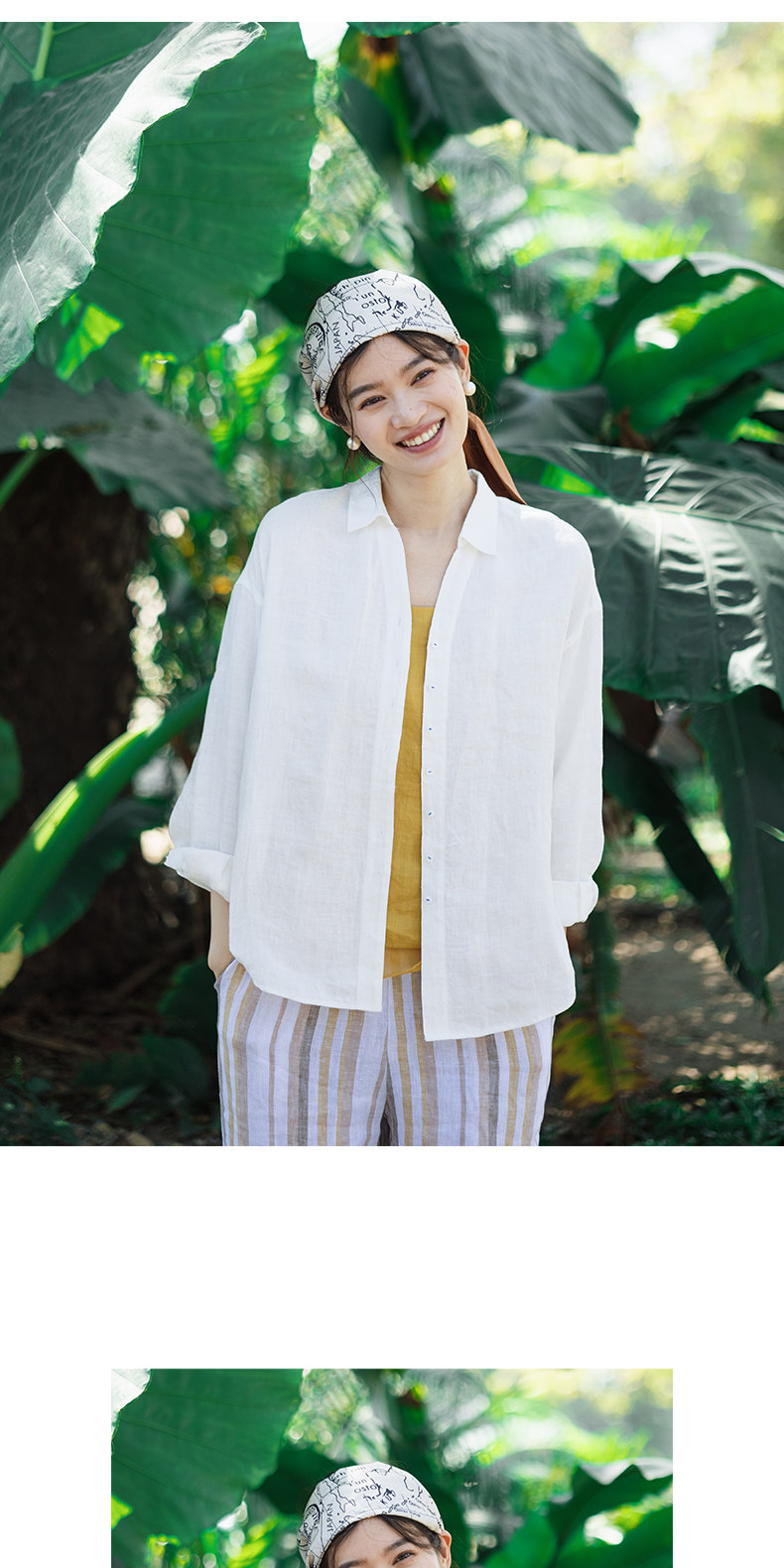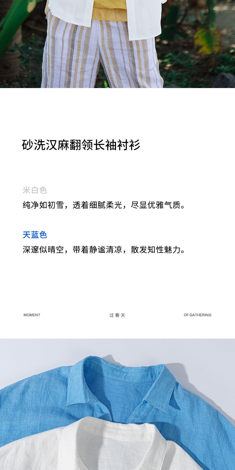 特绽放女装118朵/大女主·砂洗汉麻翻领系扣落肩长袖衬衫女春新款