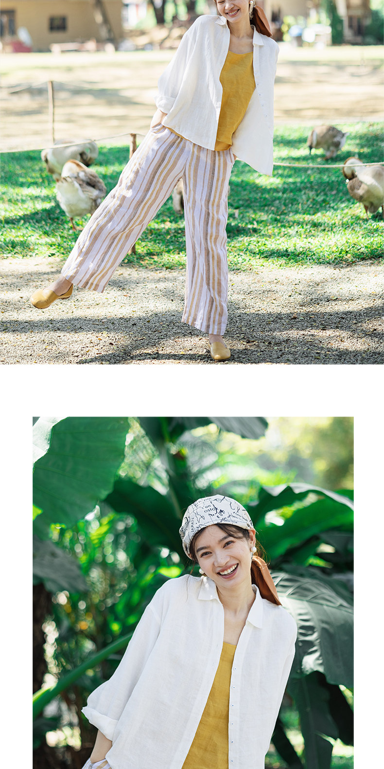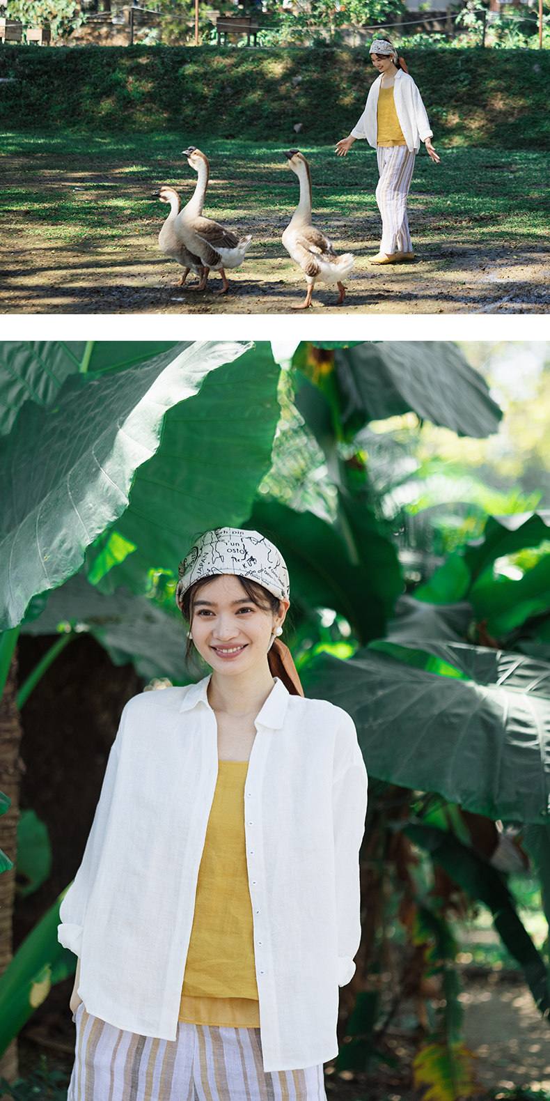 以天然亚麻为载体,融合热烈色彩与自在剪裁为身在城市、心怀远方的女性提供兼具美学与舒适的旅行着装