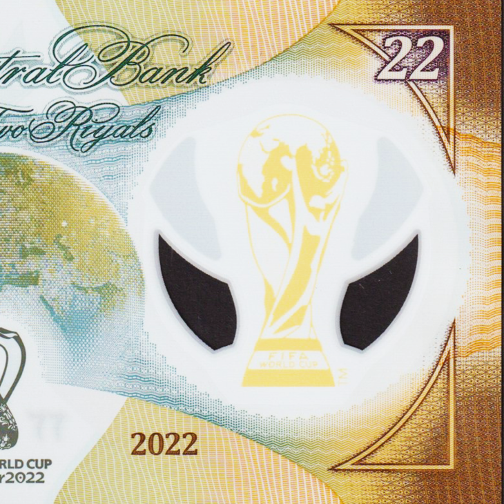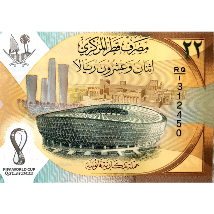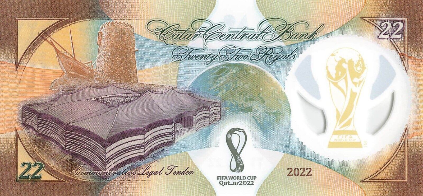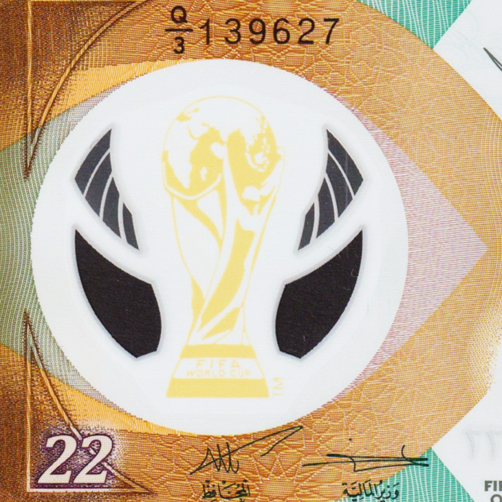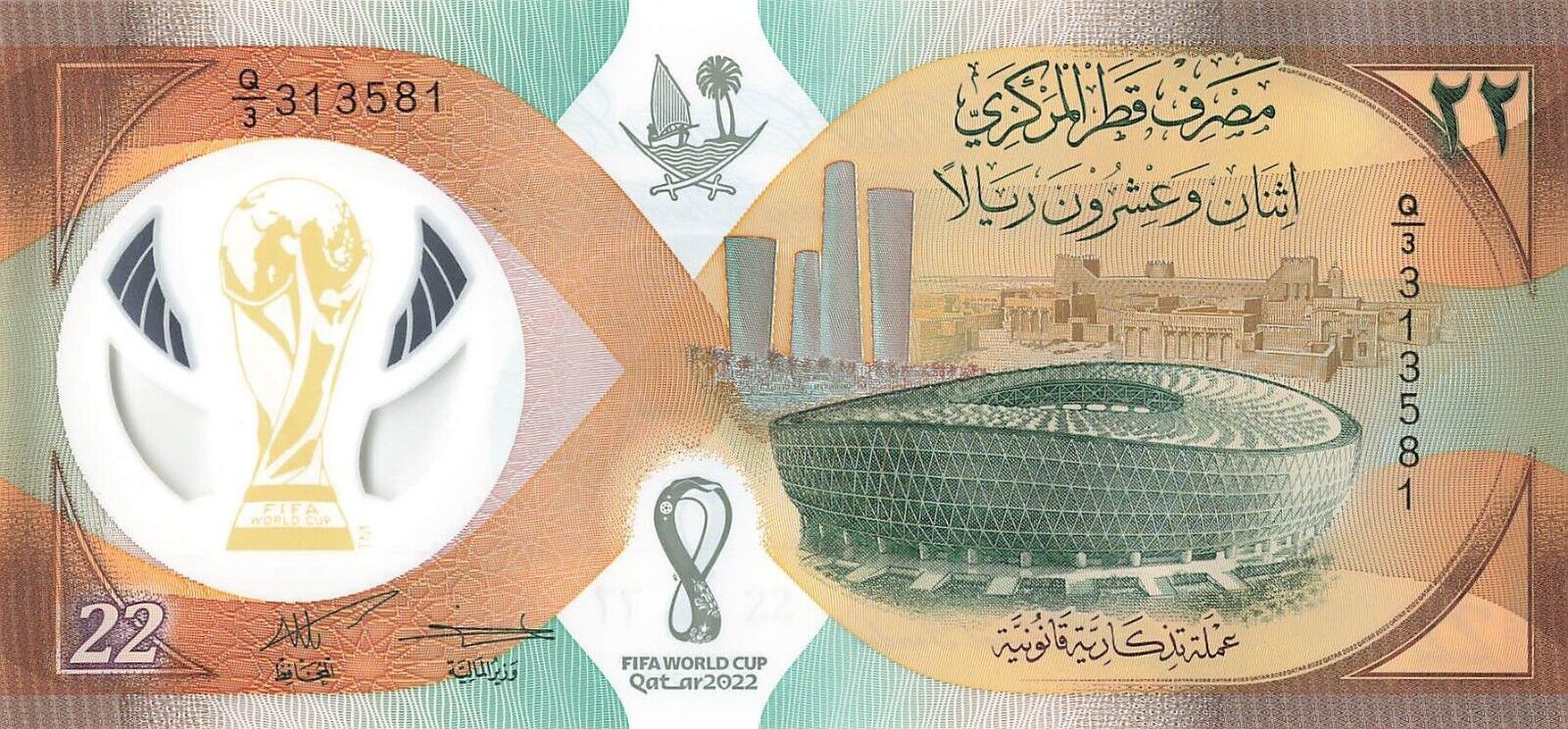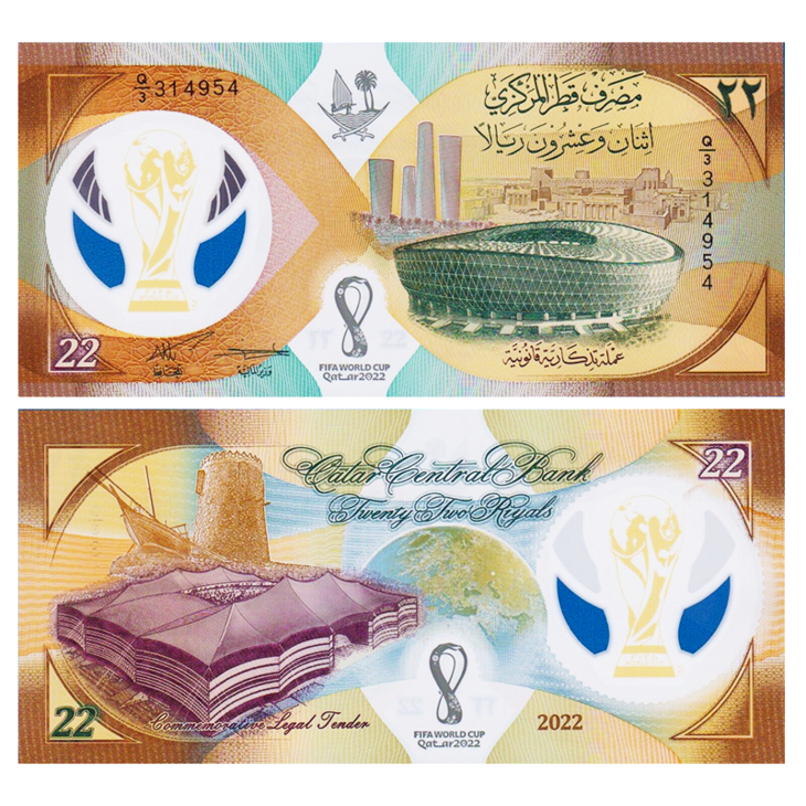 卡塔尔世界杯纪念钞,面额为22里亚尔,是目前世界上唯一一张面值22的纪念钞!