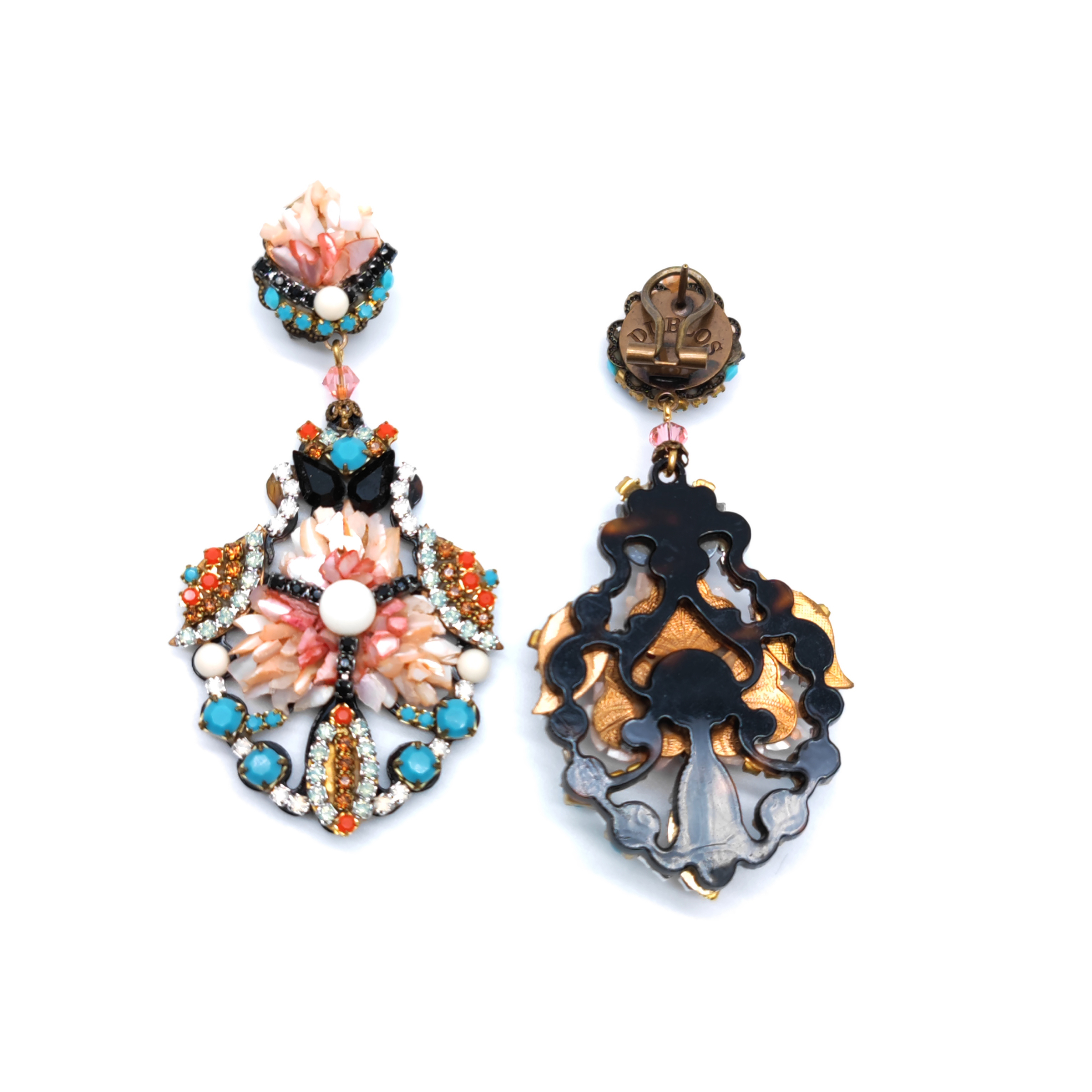 耳环材质为:珠宝级合金镀氧化银 人工玻璃水晶 珠宝级树脂